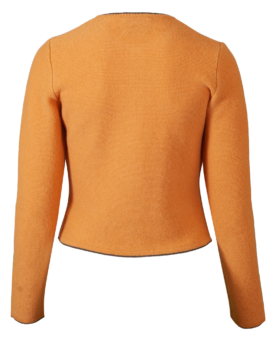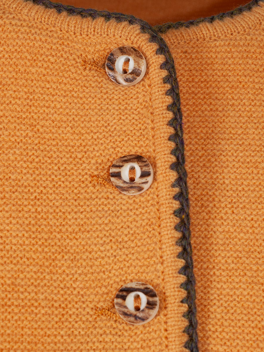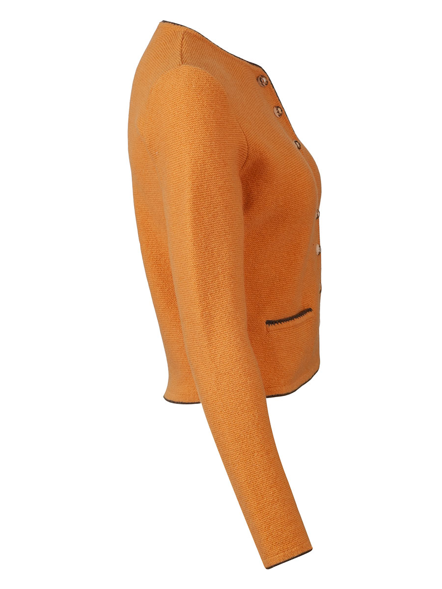 Produktinformationen "Astrifa Dirndlstrickjacke Finsing, goldgelb, braune Einfassung"