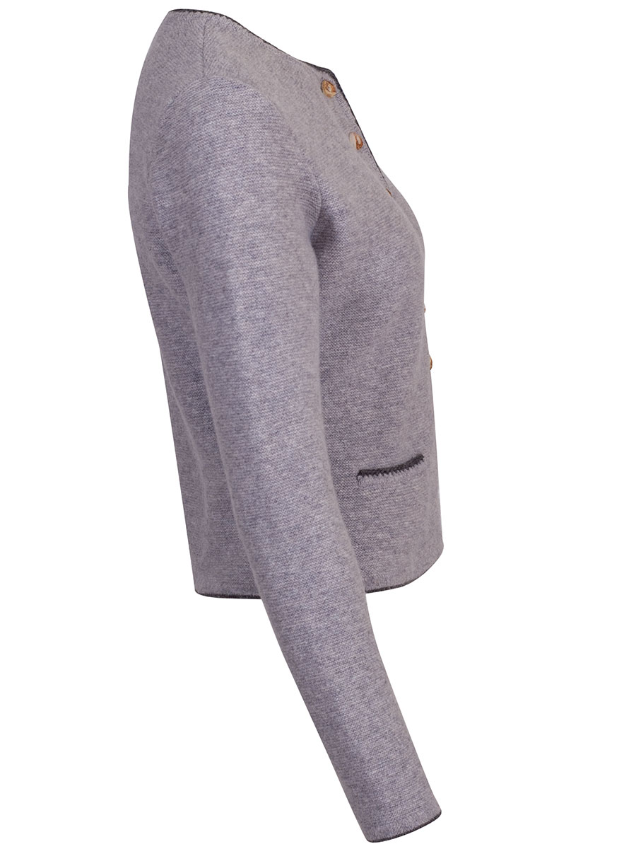 Produktinformationen "Astrifa Dirndlstrickjacke Finsing, hellgrau, dunkelgraue Einfassung"
