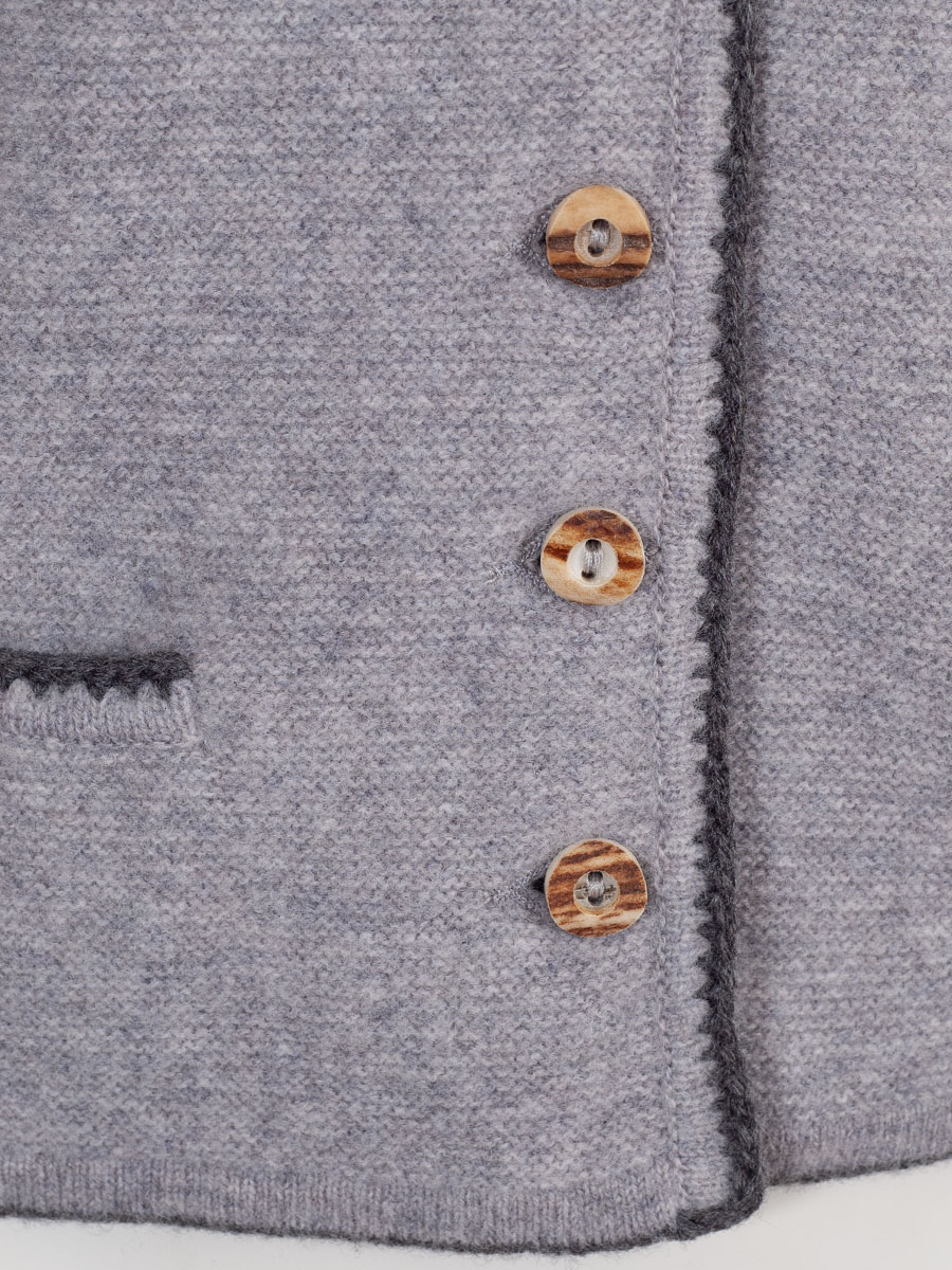 Astrifa Dirndlstrickjacke Finsing, hellgrau, dunkelgraue Einfassung