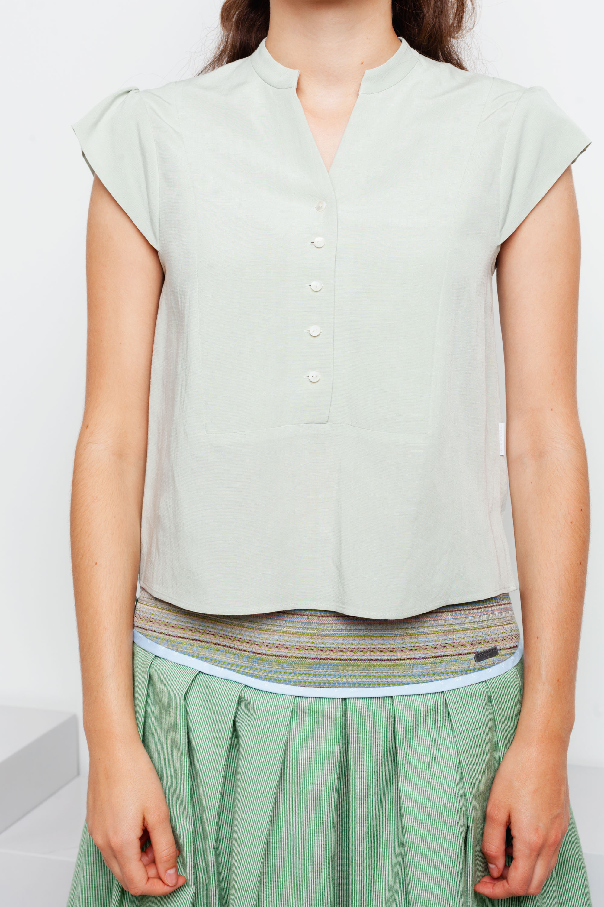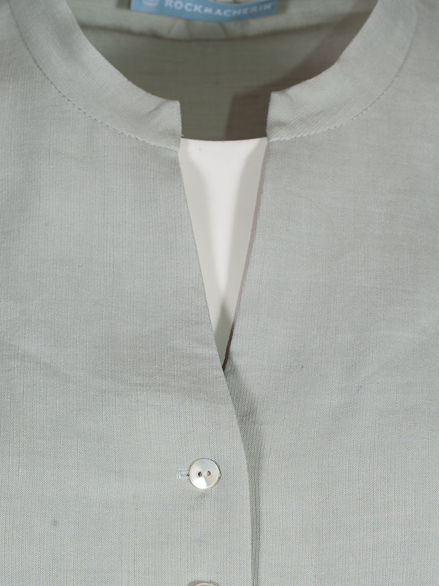 Die klare Form der Bluse Alena der Firma Rockmacherin erhält durch die gekräuselt angesetzten, kurzen Flügelärmel den einzigartigen ROCKMACHERIN-Charm, der sich auch in den schönen Perlmuttknöpfen widerspiegelt. Die zart salbei-mint-farbene Alena besteht aus einer Viskose-Leinenmischung mit typischer Leinenstruktur. Mit viel Liebe zum Detail in Bayern gefertigt.