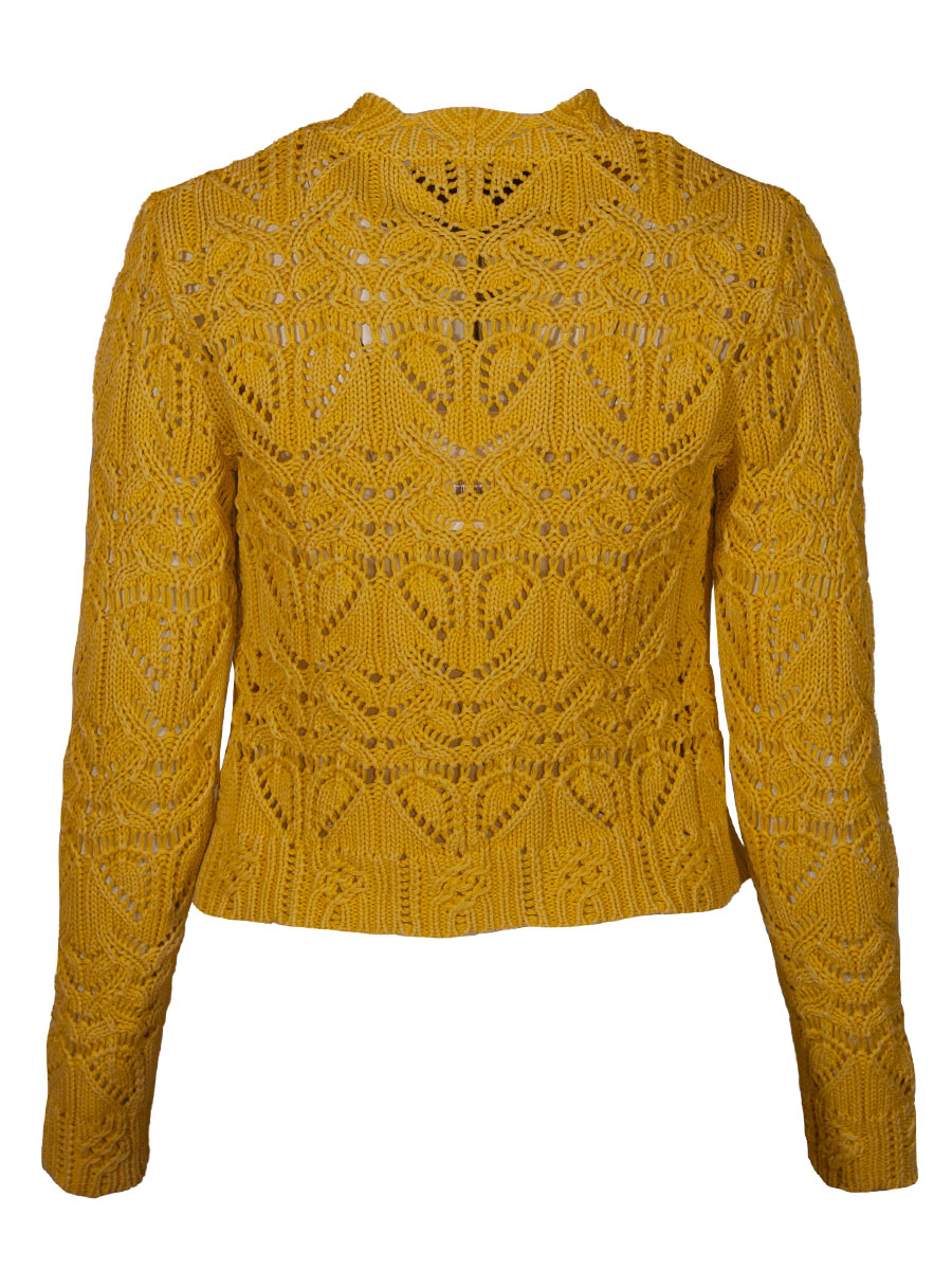 Produktinformationen "fei scho schee Strickjacke, gelb, grobes Häkelmuster, kurz"