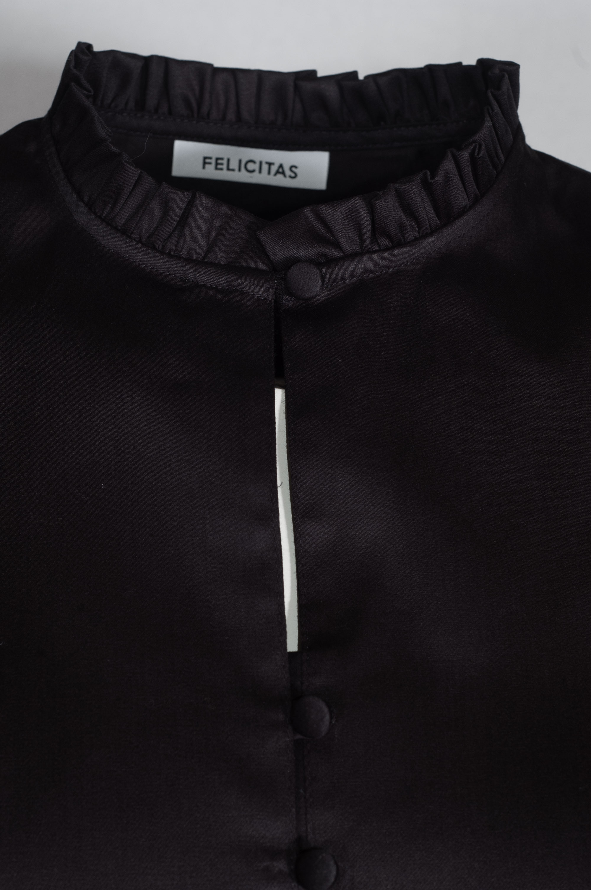 Produktinformationen "Feli und Hans Langarmbluse Lochen, schwarz, hochgeschlossen, Rüschen"