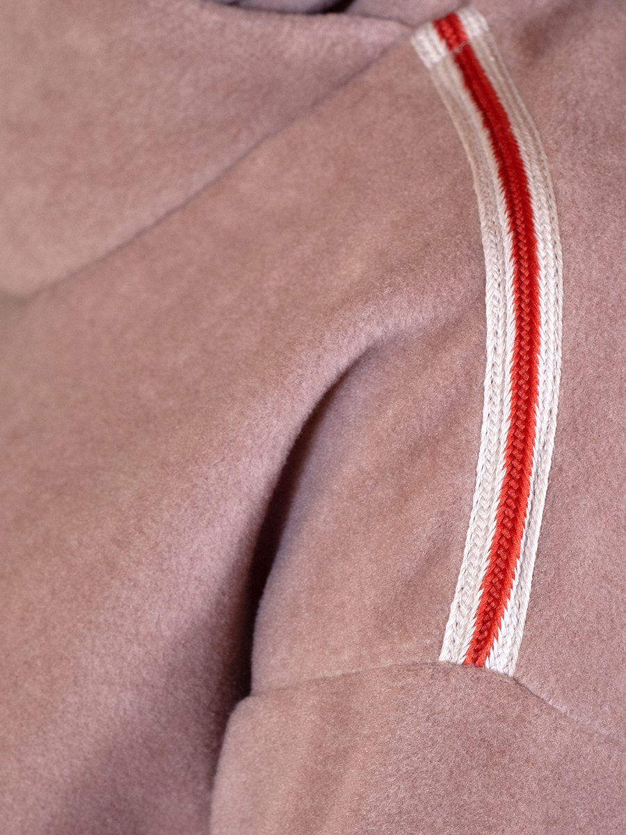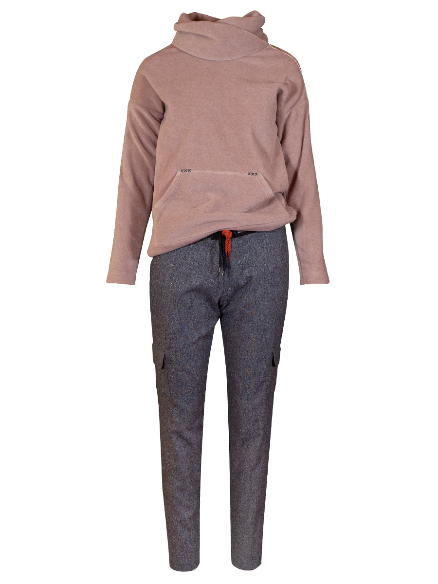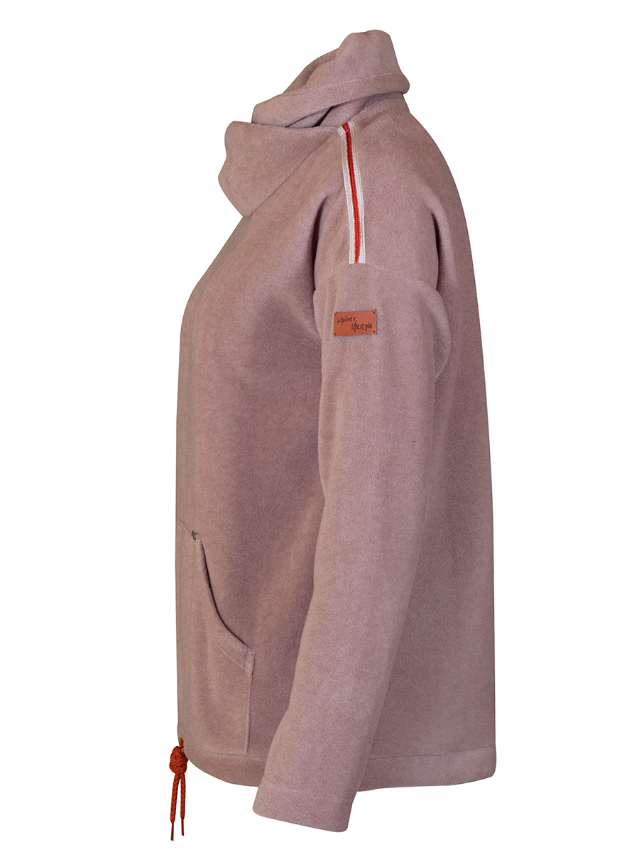 Kuschliger Winterpullover der Firma Hammerschmid. Der flauschige Pulli hat eine Durchgreifetasche am Bauch und kann mit einem orangen Kordel am Bund enger gezogen werden. Auf die Schulter wurde eine passende Borte aufgenäht und den rechten Oberarm ziert eine Lederapplikation. Der voluminöse Kragen gibt dem Damenpullover einen richtigen Wohlfühlcharakter.