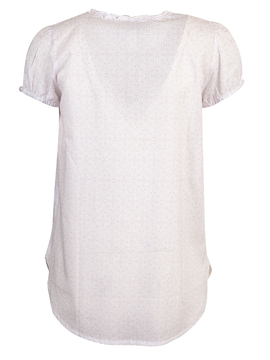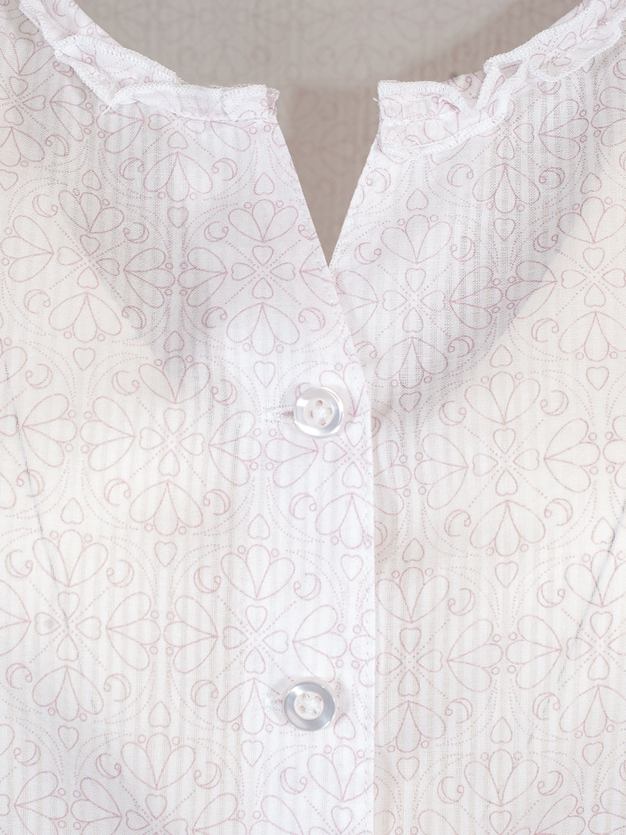 Hammerschmid Meike Kurzarmbluse, weiß, rosa bedruckt, Rüschenkragen