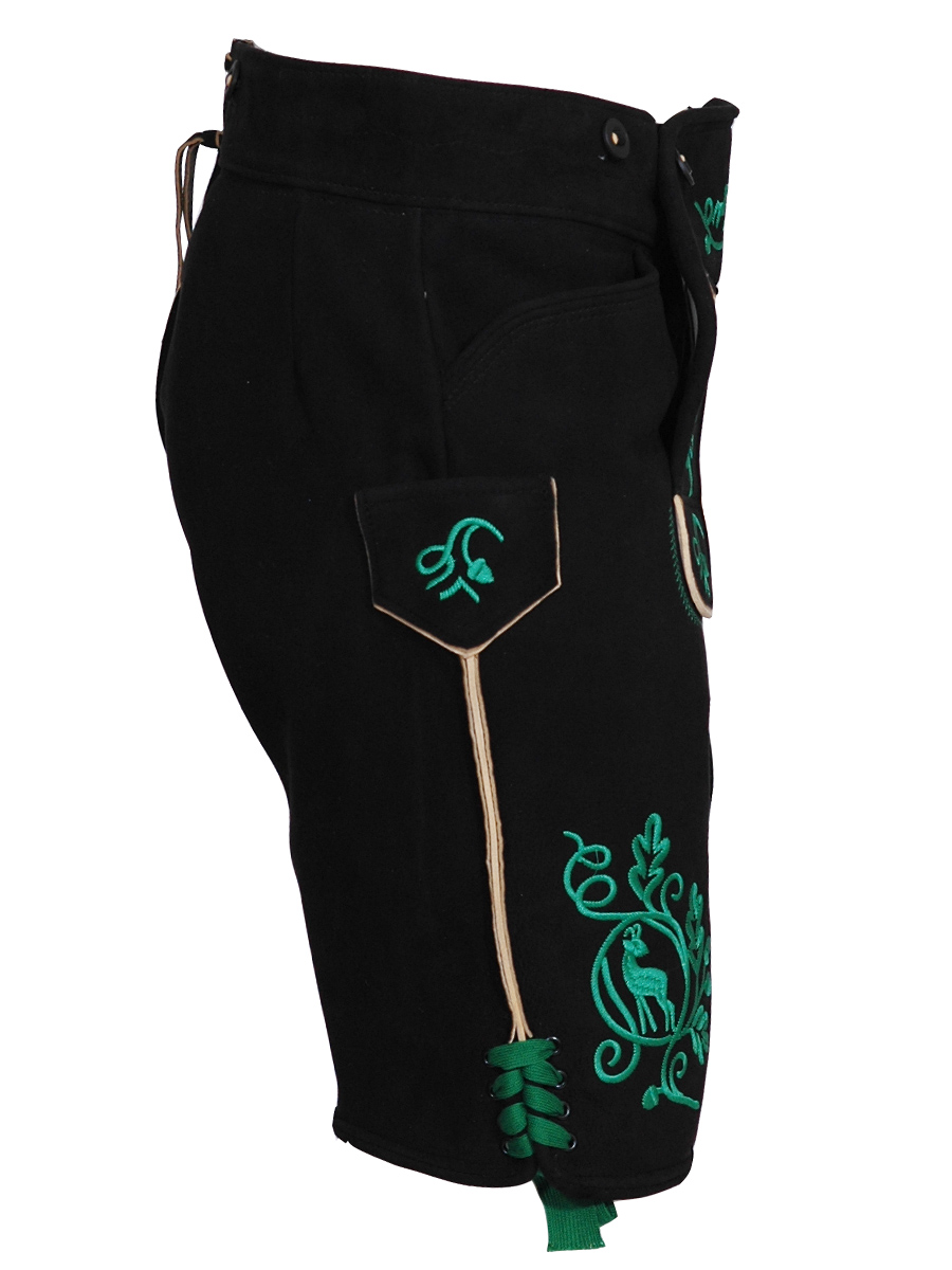 hausg´macht Lederhose Originaltracht, Schliersee, Handstick-Optik, Hirsch, dunkelgrün