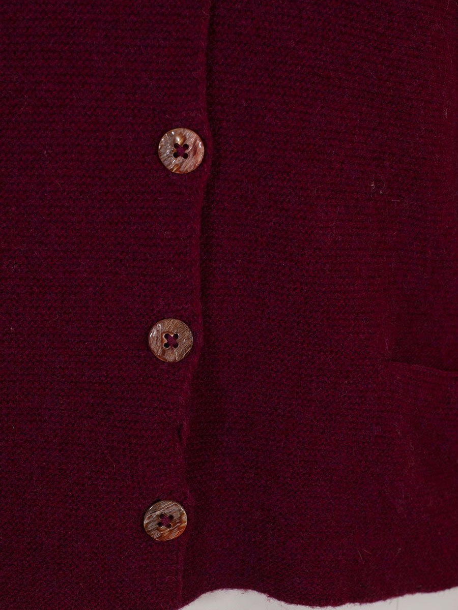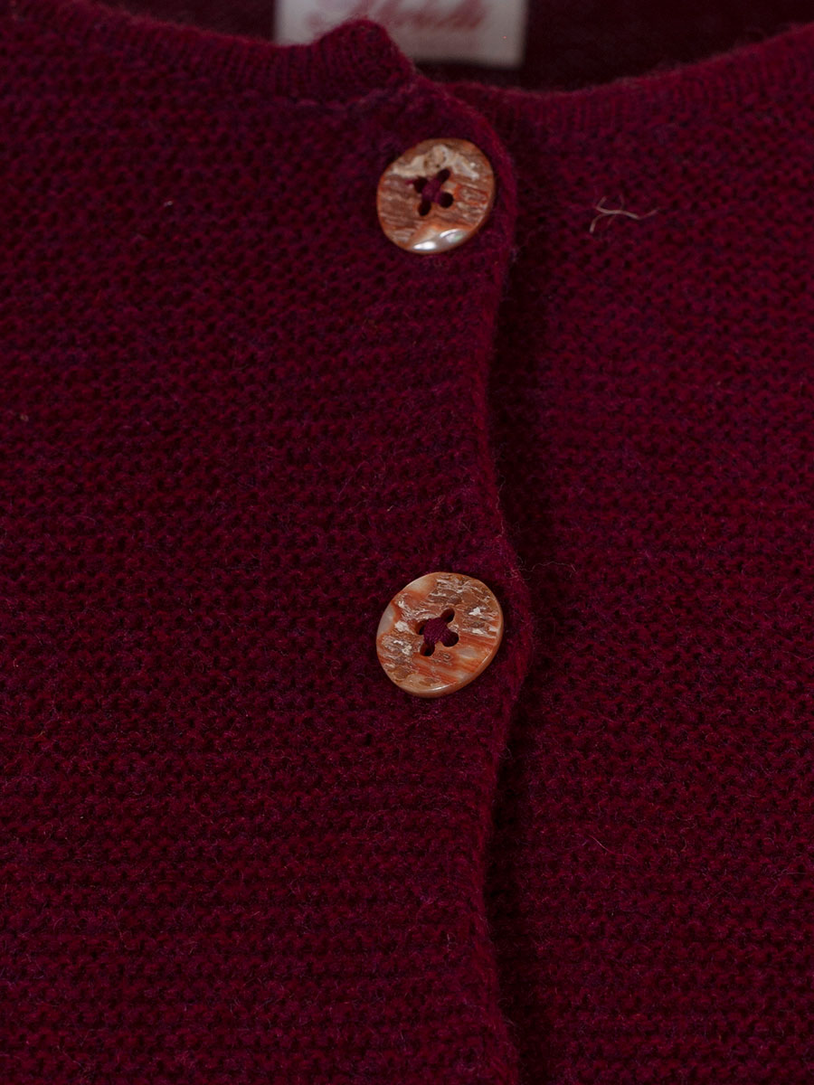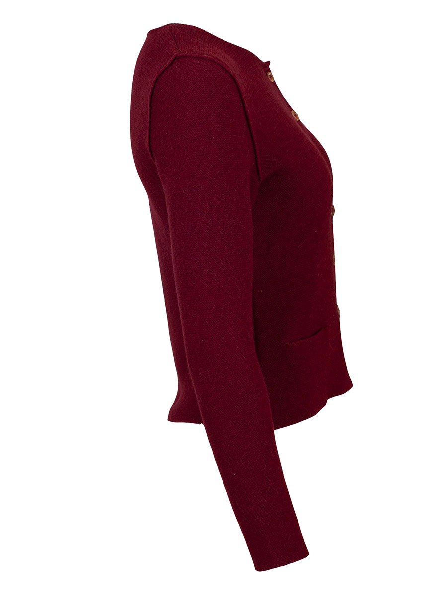Heidi Strickjacke, bordeaux, Perlmuttknöpfe, glatt gestrickt, fein
