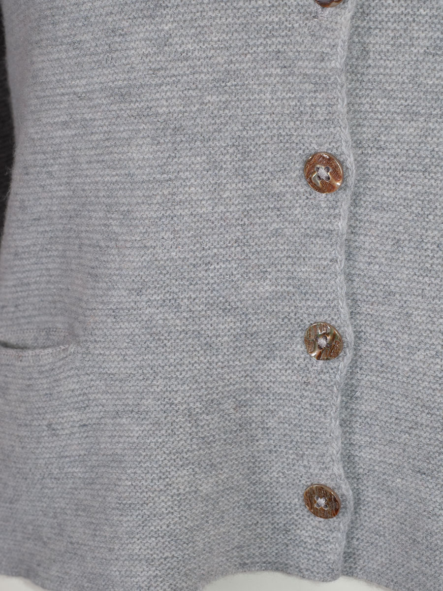 Heidi Strickjacke, sanftgrau, Perlmuttknöpfe, glatt gestrickt, fein