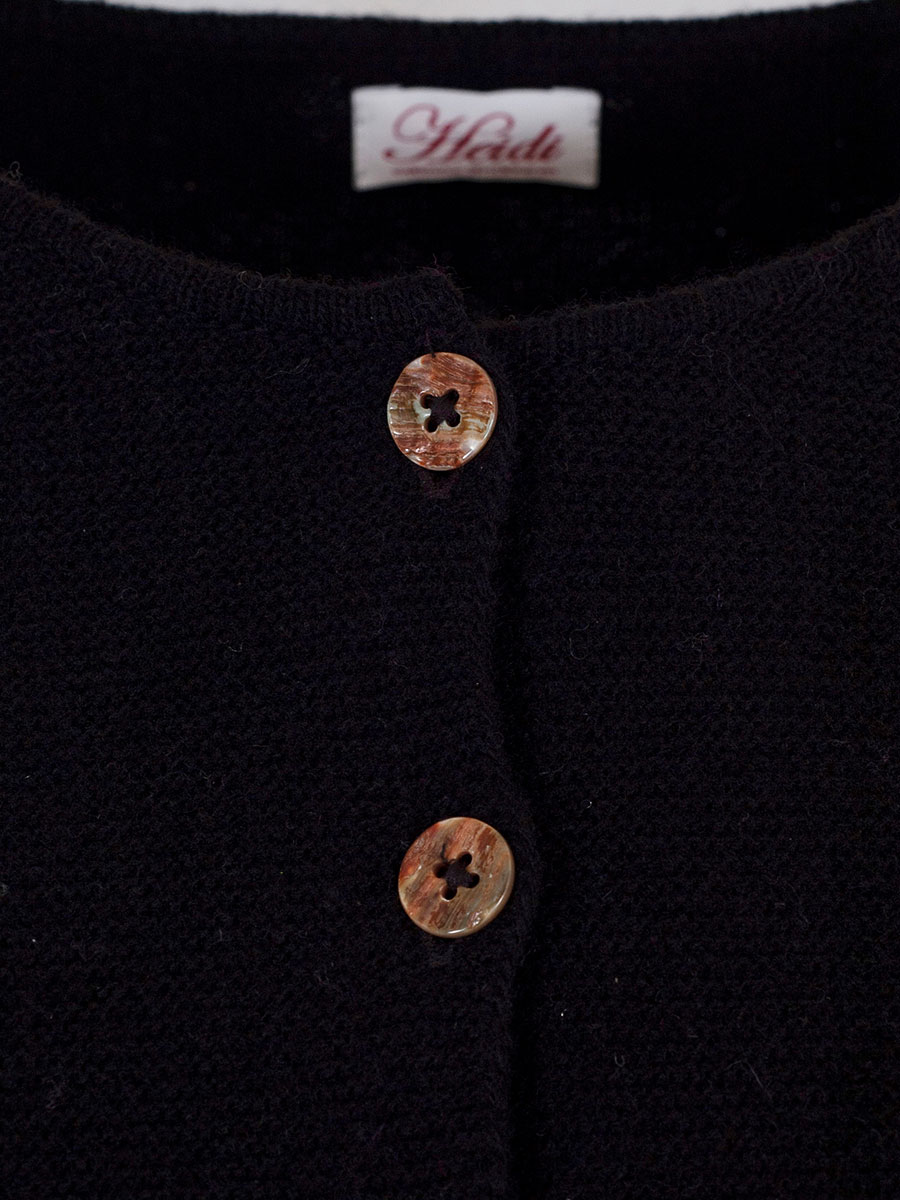 Heidi Strickjacke, schwarz, Perlmuttknöpfe, glatt gestrickt, fein