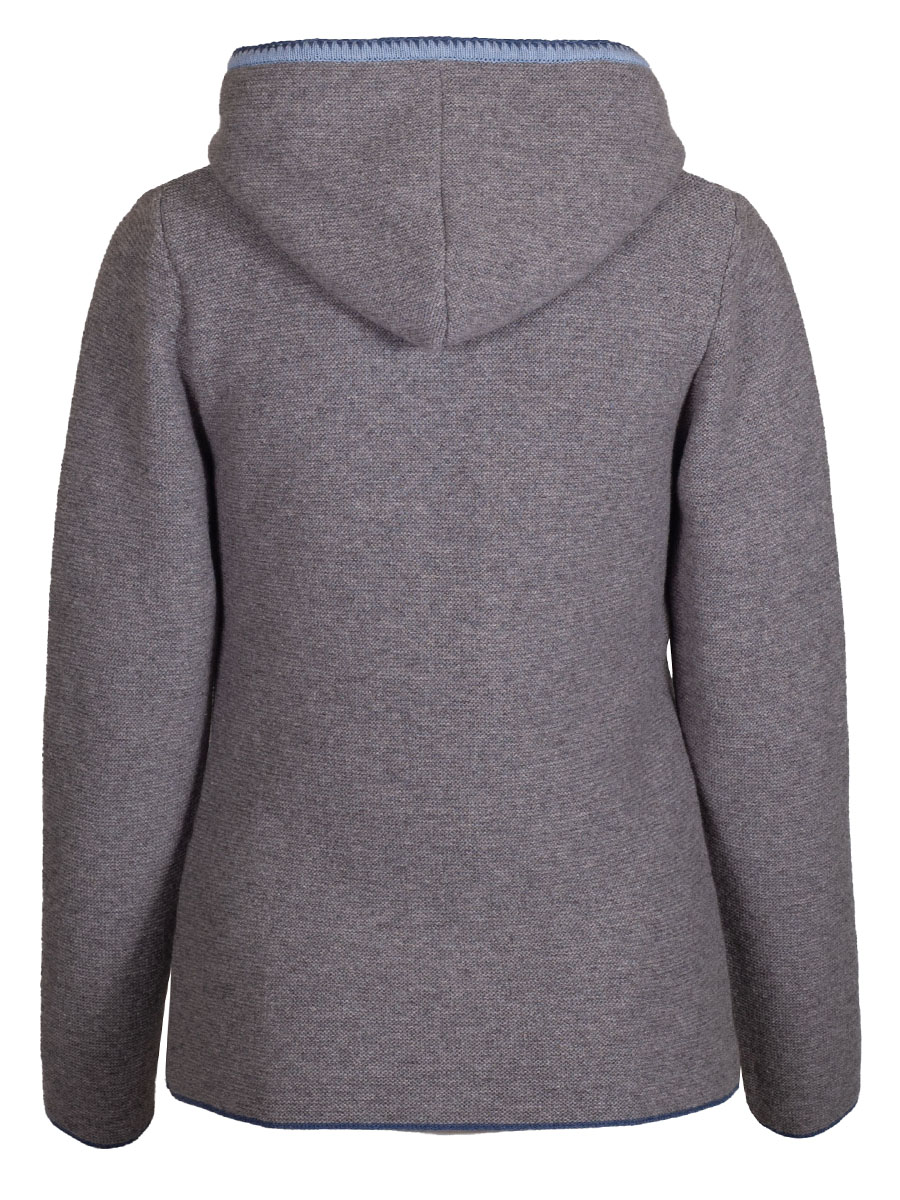 Huber Kapuzen-Strickjacke Erika, grau, Einfassung in Hellblau-Blau