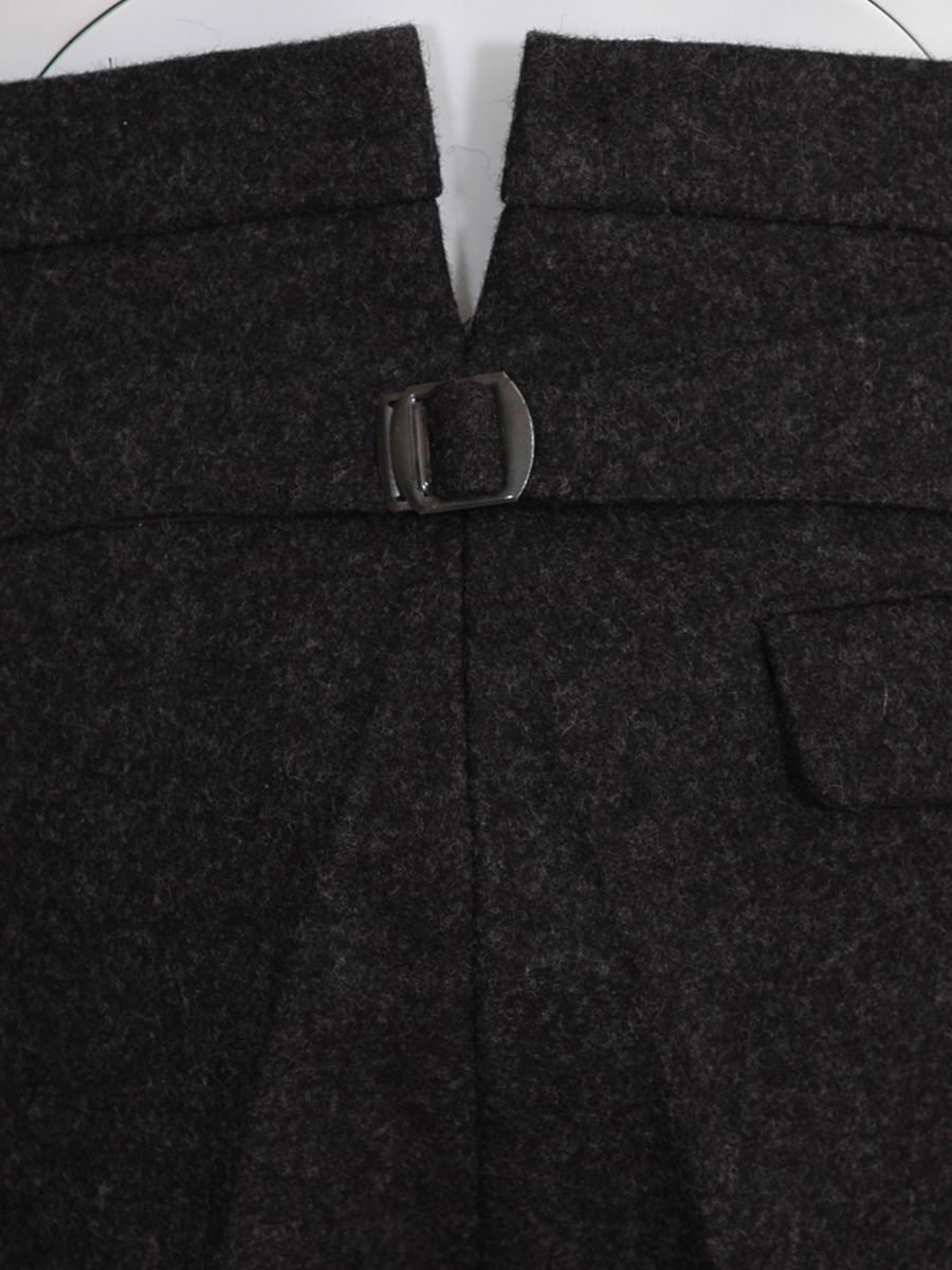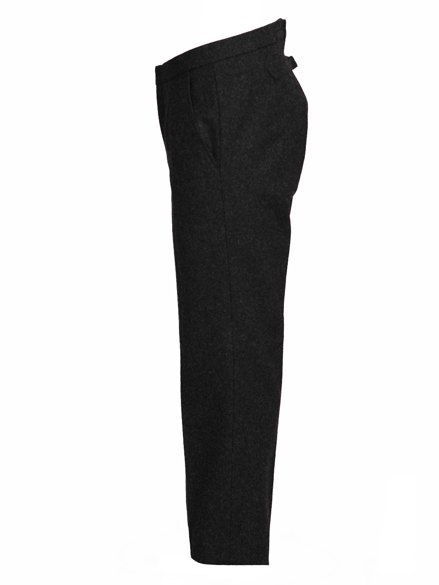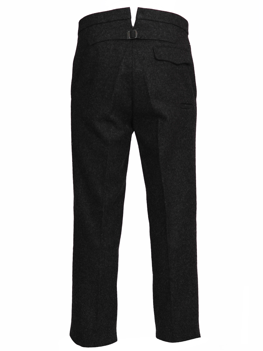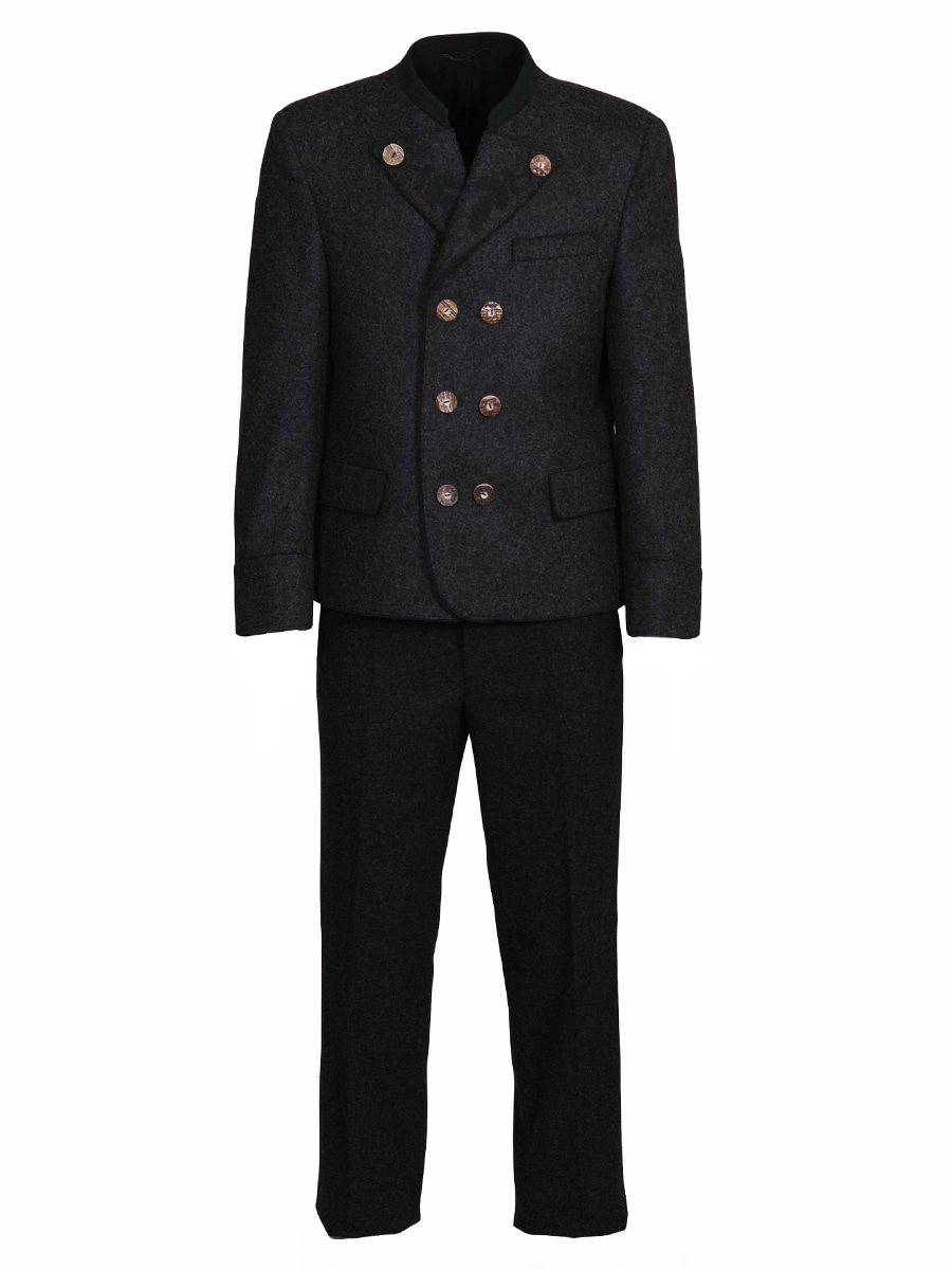 Lange Lodenhose aus Bergloden in der Farbe grau. Die Hose ist höher geschnitten und mit einem Riegel hinten verstellbar. An die Trachtenhose sind Messertasche und Gesäßtasche angenäht. Geschlossen wird die Hose vorne mit Knöpfen. Die Hose fällt etwas größer aus.