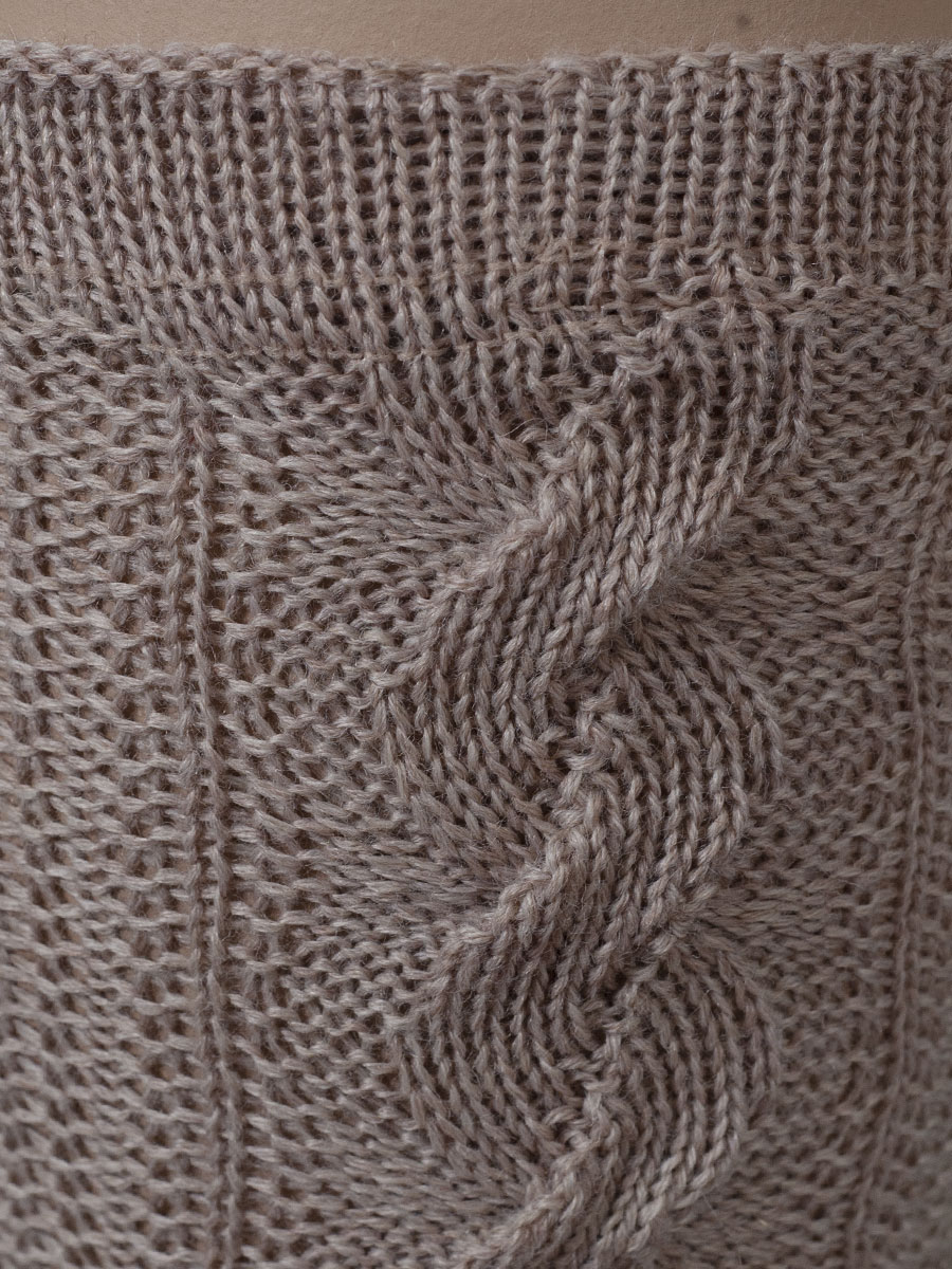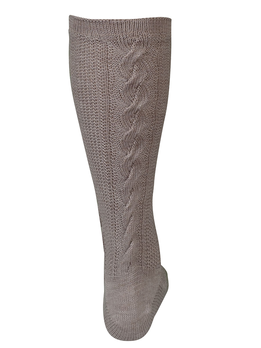 Kniestrumpf der Firma Lusana in der Farbe beige. Der Strumpf passt zu jeder kurzen Lederhosen oder Kniebundlederhosen und hat ein Zopfmuster.