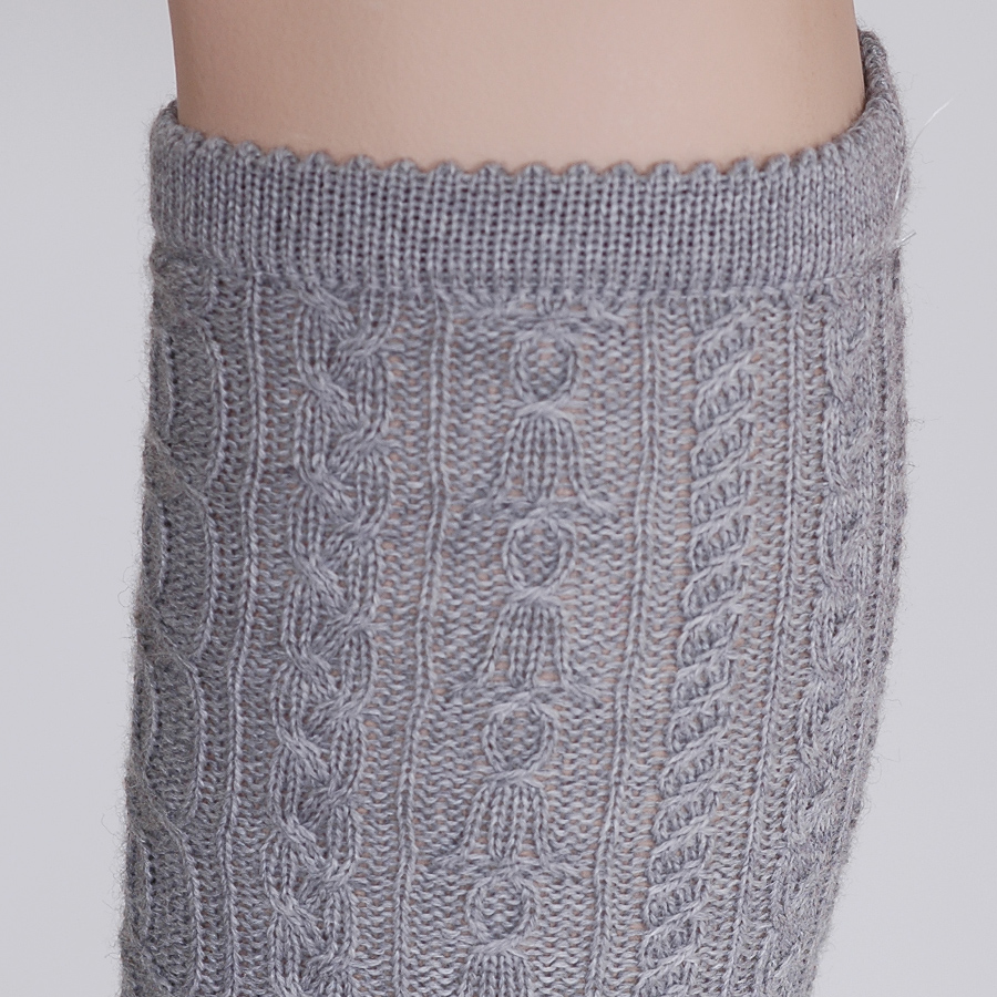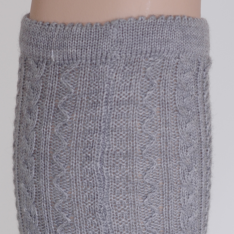 Lusana Kniestrumpf grau, Handstrick mit Zopfmuster