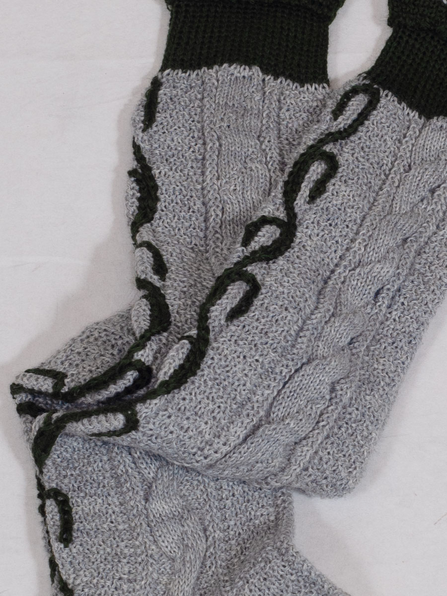 Lusana Umschlagstrumpf hellgrau mit tanne, grüner Stick
