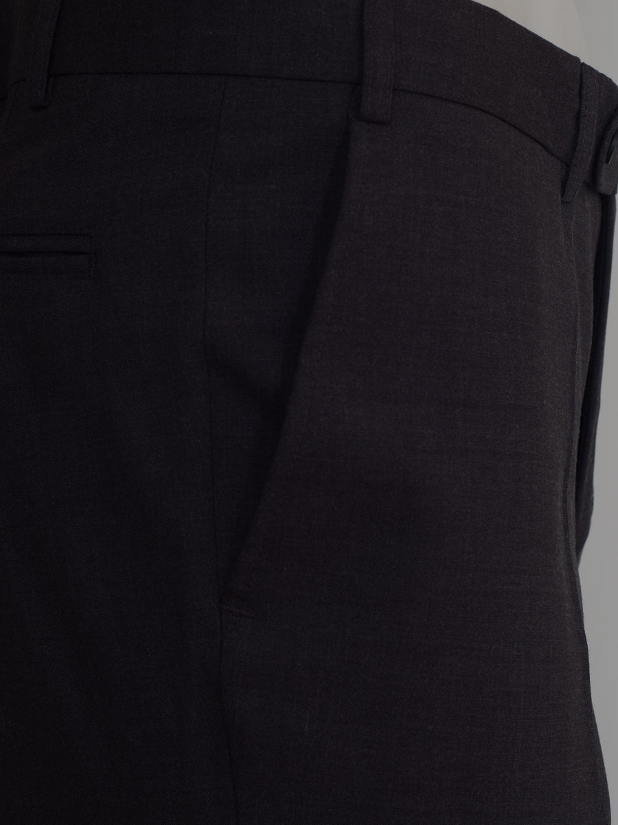 Elegante Anzugshose in Fresko-Qualität mit zwei Taschen und einer Gesäßtasche. Die schmal geschnittene Herrenhose hat eine Bügelfalte und ist bis zum Knie gefüttert.