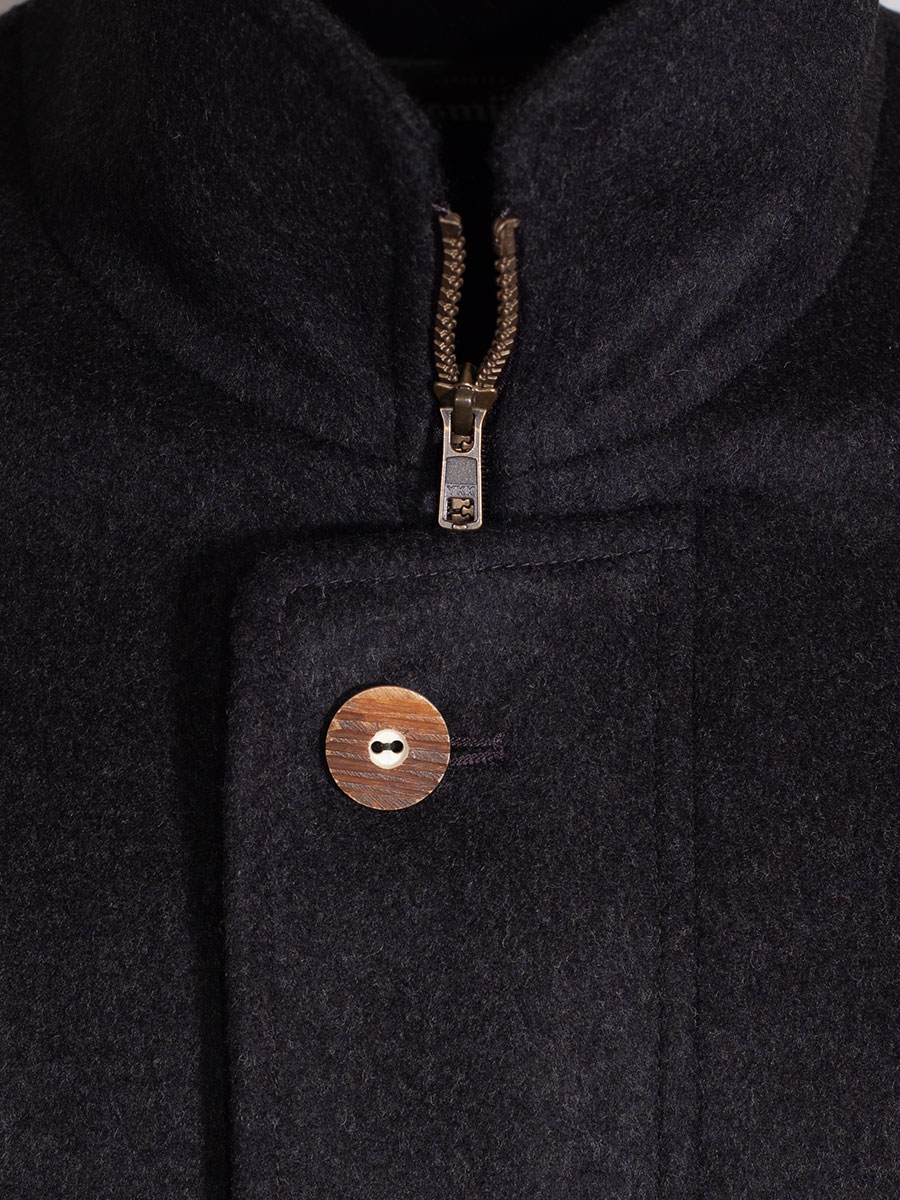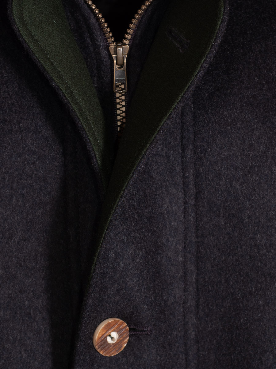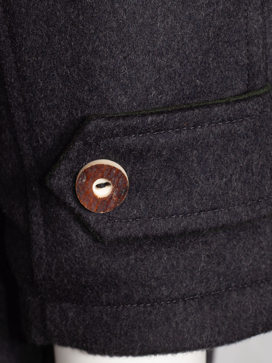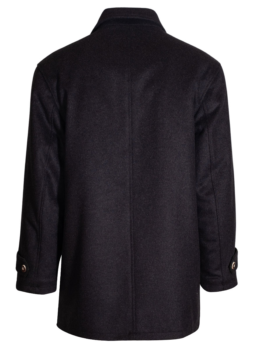 Traditioneller Herrenjanker mit Umlegekragen. Die anthrazitfarbene Outdoorjacke von Schloß Orth wird mit Reisverschluss oder Hornknöpfen geschlossen. Die Winterjacke ist etwas länger und für die kühleren Tage geeignet. Sie ist mit drei Innentaschen und zwei Aussentaschen sowie Handytasche ausgestattet. Perfekt zur Jeans oder über einen Anzug.