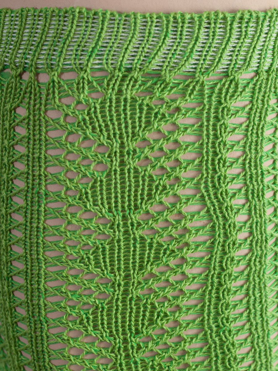 Fescher Trachten-Kniestrumpf für Damen in grasgrün. Der Strumpf lässt sich angenehm und ohne Drücken tragen. Das Lochmuster macht den Damenstrumpf attraktiv und wunderbar passend zu jedem Dirndl und Trachtenrock. Im Abschluss ist ein Gummi eingearbeitet.