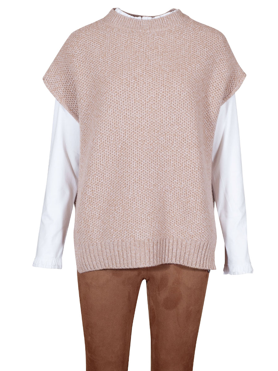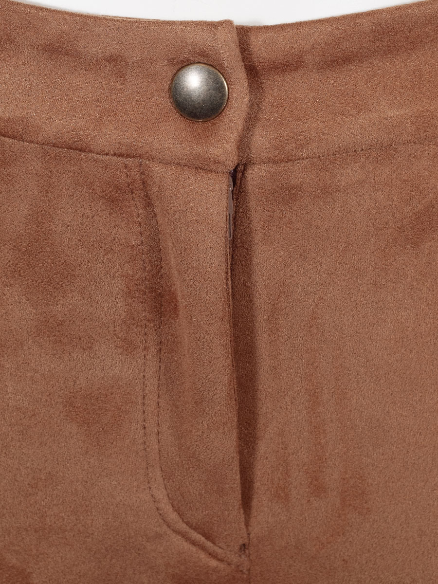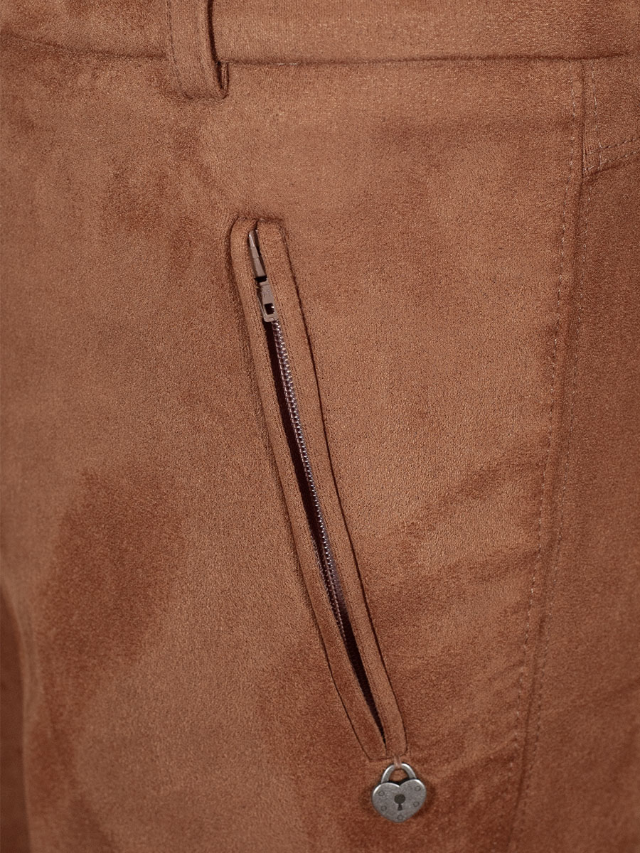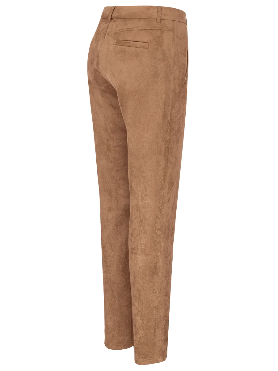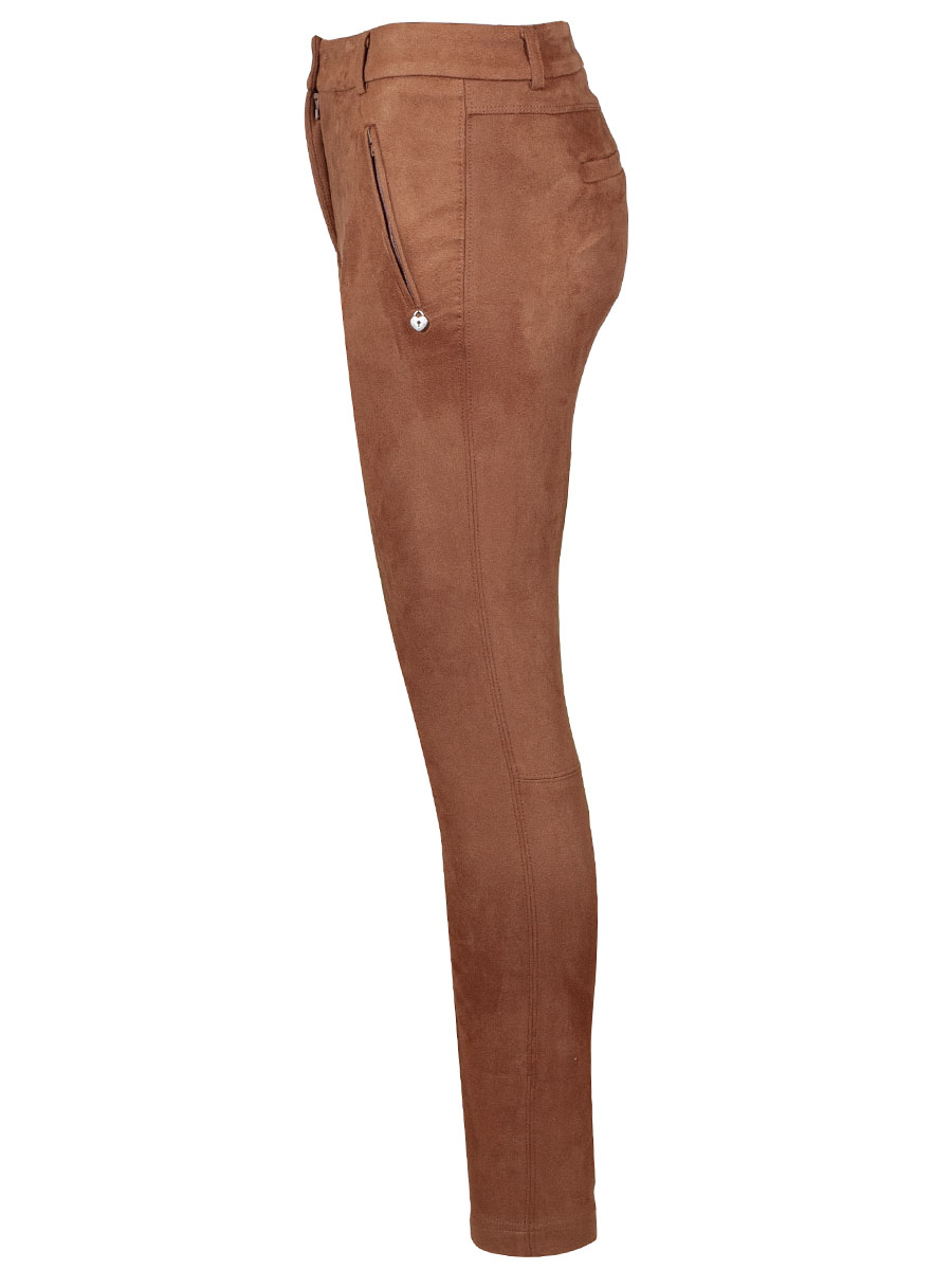 Von & Zu Skinny Hose, Velour Kunstleder, camel