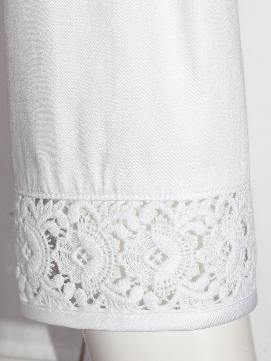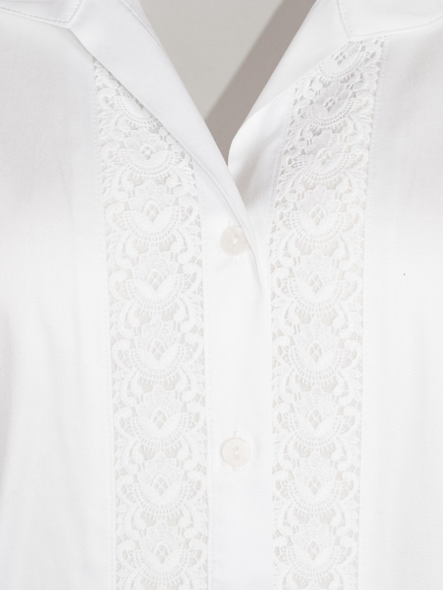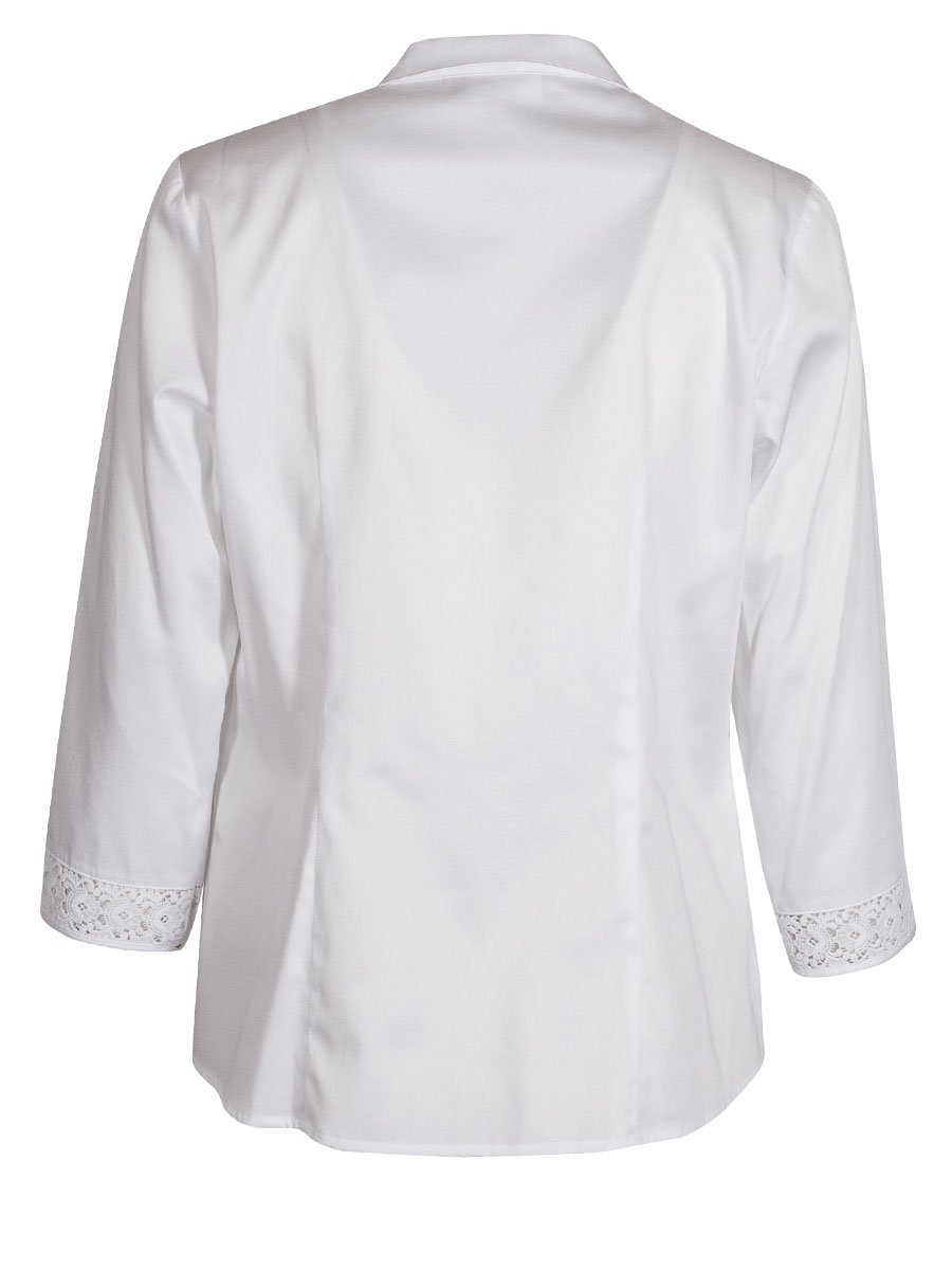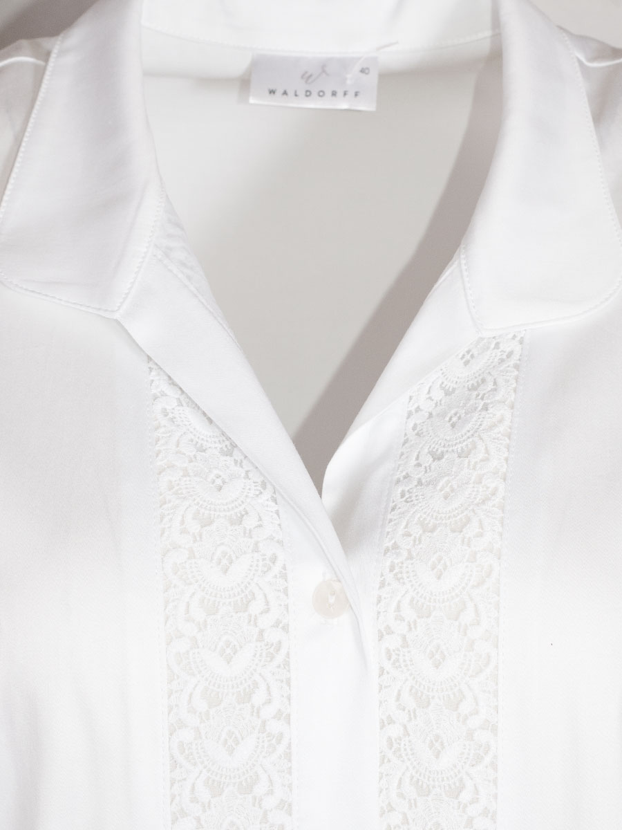Waldorff Damenbluse Helga, weiß, elegant, 3/4-Arm, Spitzeneinsatz, Stretch
