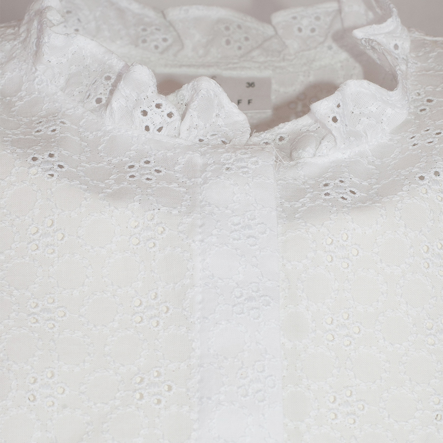 Waldorff Dirndlbluse weiß, Lochmuster, Kurzarm. Rüschen