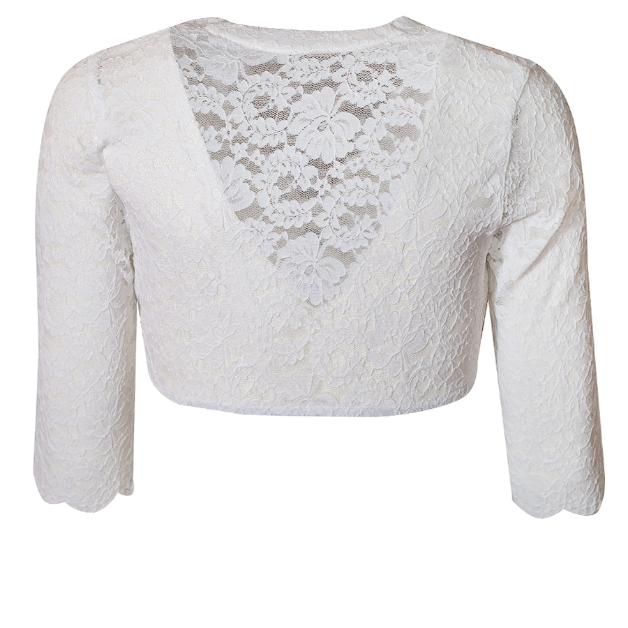 Waldorff Spitzen-Dirndlbluse creme, 3/4-Arm, V-Ausschnitt, Wickeloptik