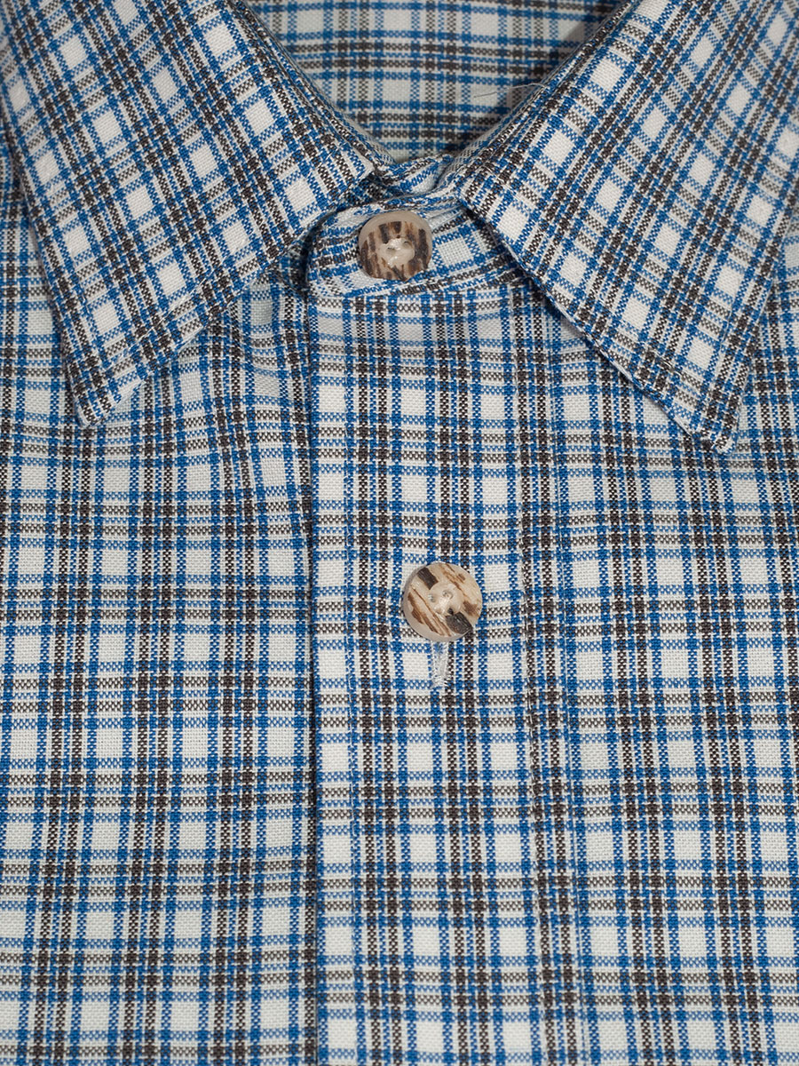 Waldorff Trachtenhemd, grau-blau, kariert, Liegekragen, Hirschhornknöpfe
