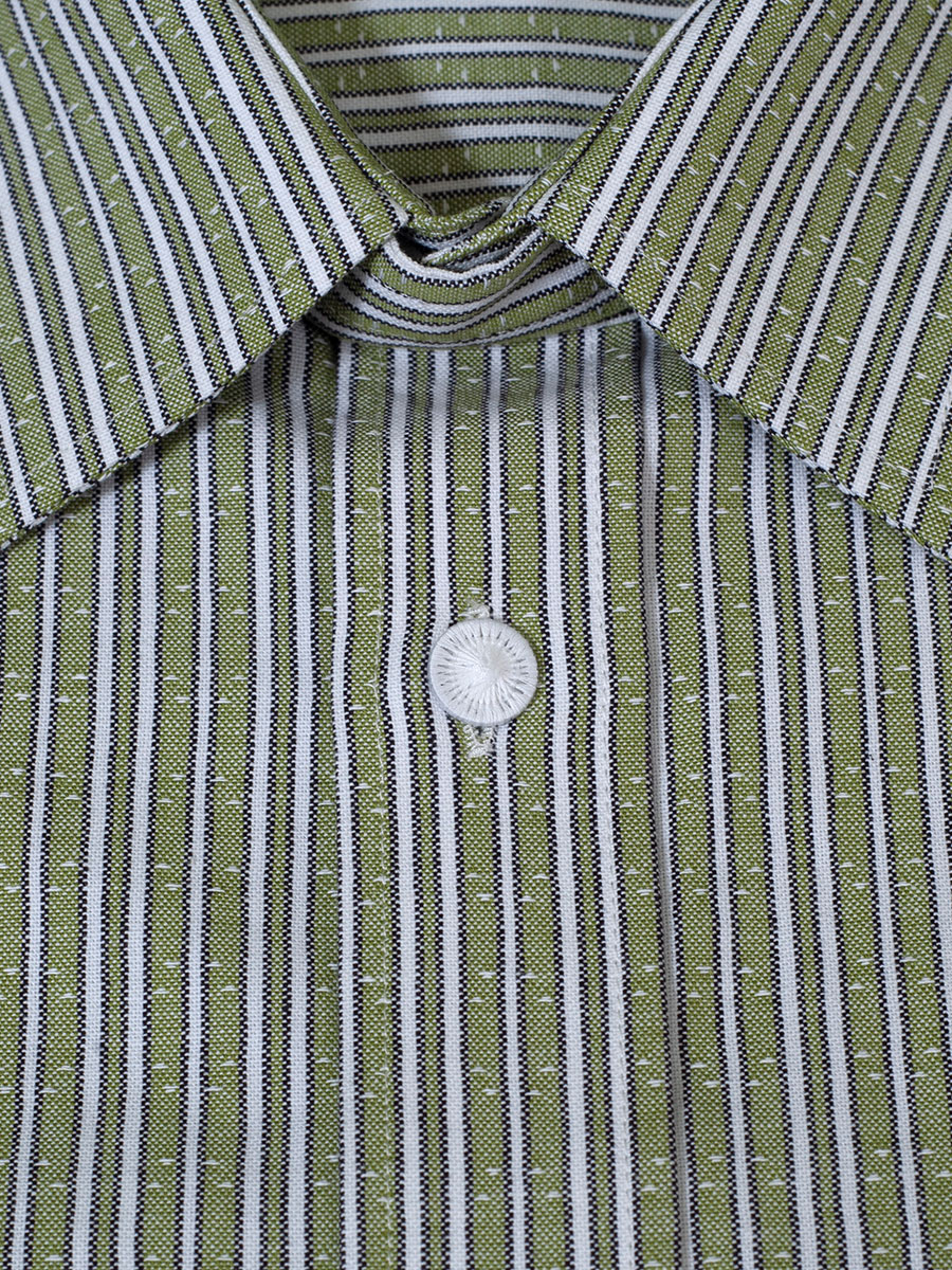 Klassisches, gestreiftes Trachtenhemd in der Farbe grün mit Riegel. Die Streifen sind leicht strukturiert. Das Herrenhemd - auch Pfoad genannt - hat einen Liegekragen und wird mit Wäscheknöpfen geschlossen.