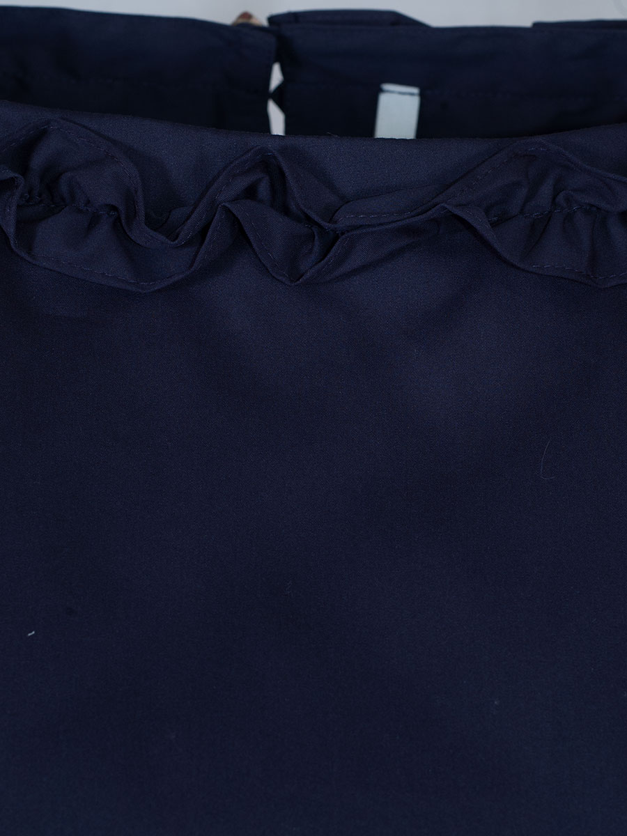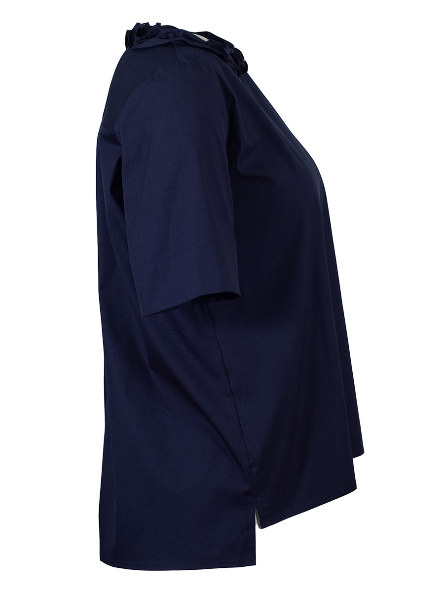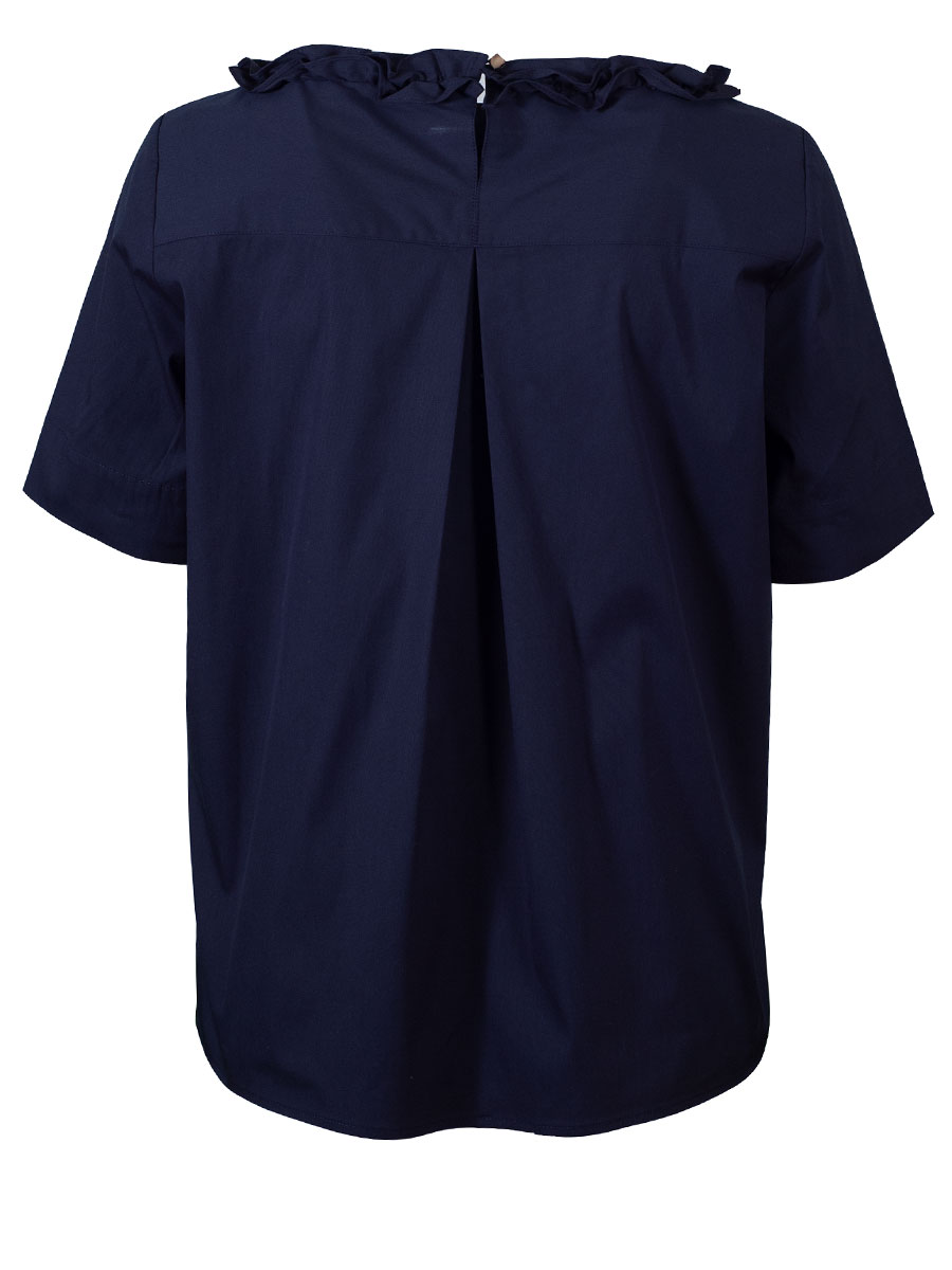 Wallmann Bluse dunkelblau, Rüschenkragen, 3/4-Arm, Rückenfalte