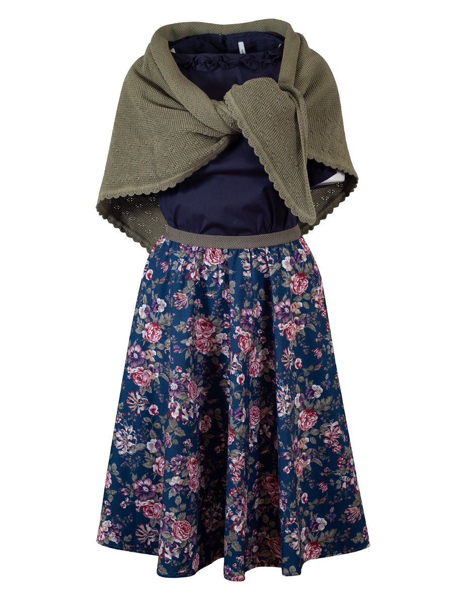 Hübsches sommerliche 3/4-Arm Bluse der Firma Wallmann Textil in dunkelblau. Die Bluse ist eher weit geschnitten und hat einen mit Rüschen eingefassten Halsausschnitt. Dieser ist hochgeschlossen und etwas weiter Richtung Schulter geöffnet. Ein Knopf im Rücken schließt das Oberteil. Zum ist die Bluse vorne um ca. 4cm kürzer geschnitten als hinten, seitlich gibt es kleine Schlitze. Eine Rückenfalte wertet die Bluse zusätzlich optisch auf.