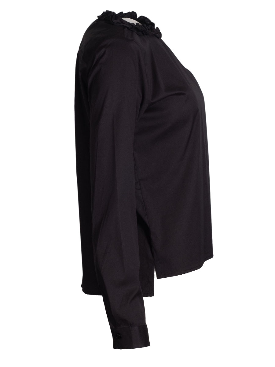 Wallmann Bluse schwarz, Rüschenkragen, Langarm, Rückenfalte