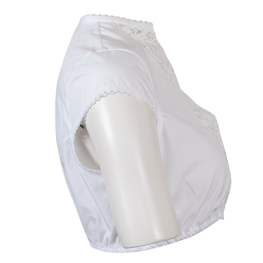 Wallmann Dirndlbluse weiß, Spitzenbesatz, Flügelarme, V-Ausschnitt