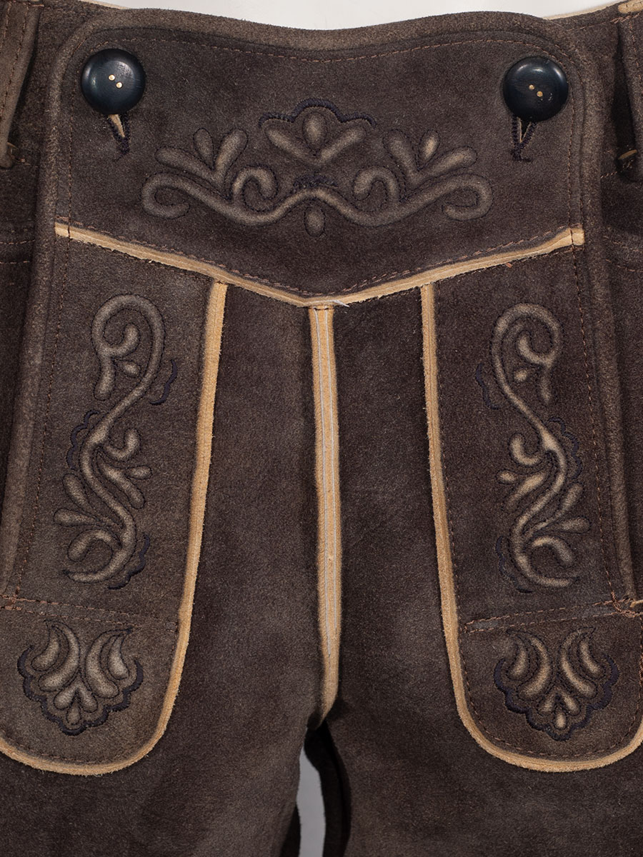Die Lederhose wird ohne Träger geliefert. Eine Auswahl an Träger finden Sie in der Rubrik Träger & Gürtel.