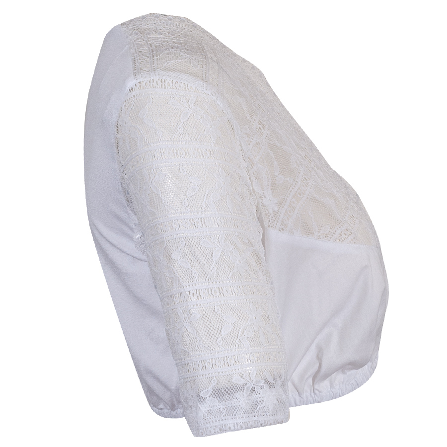 Wenger Anette Dirndlbluse, Kurzarm, weiß, V- Ausschnitt, Spitze