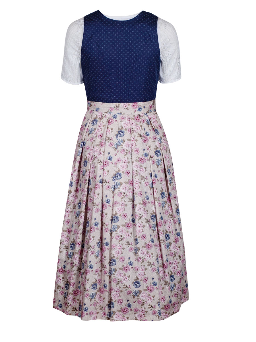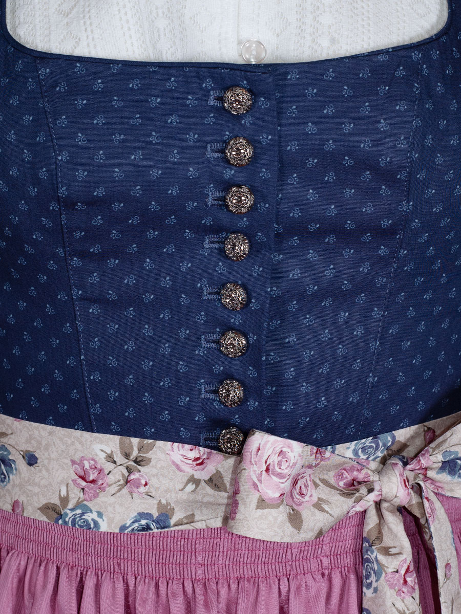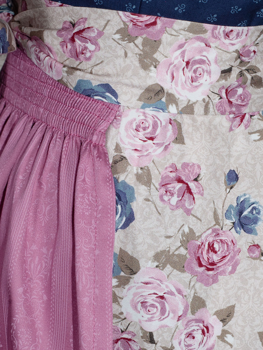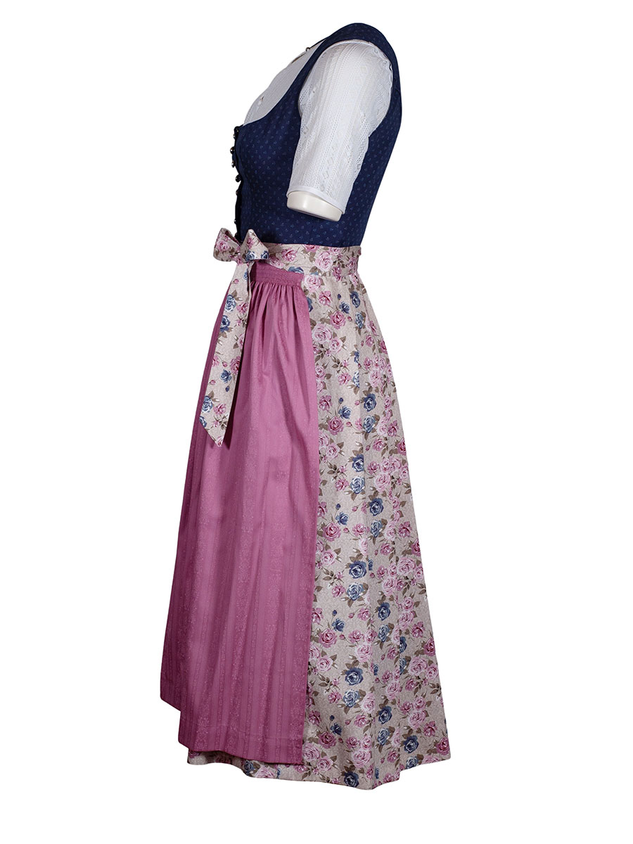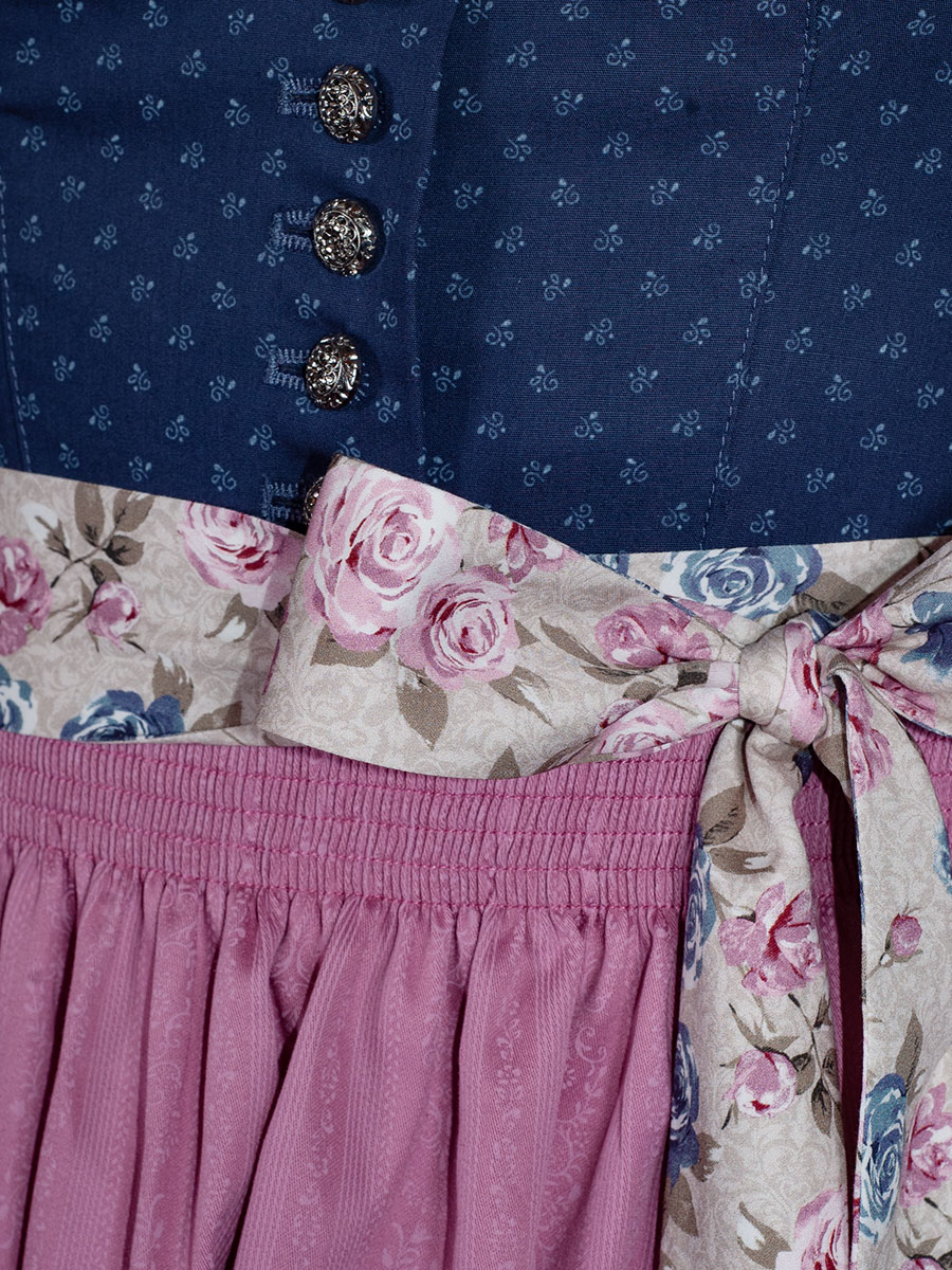 Produktinformationen "Wenger Dirndl Grace, stahlblau, rosa Schürze, Rosendruck, 80lg"