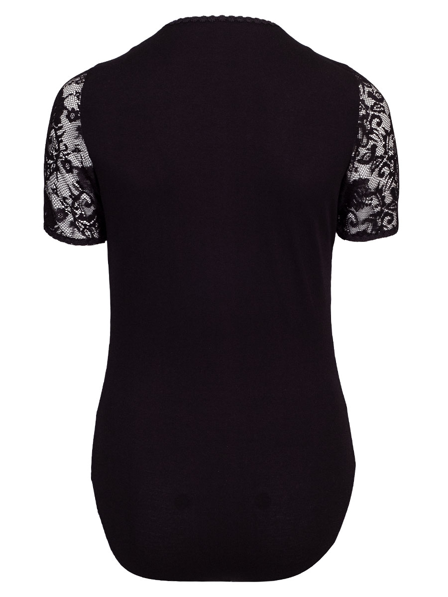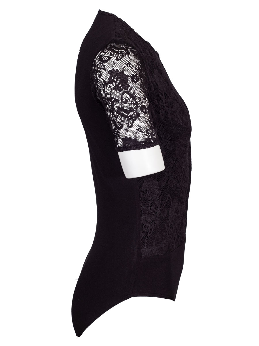 Produktinformationen "Wenger Fuschlsee Spitzenbody, schwarz, Kurzarm, Spitze, Shirtrücken, Stretch"