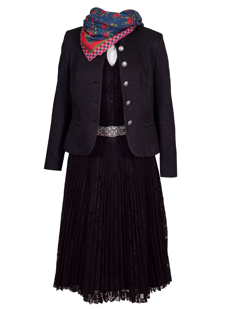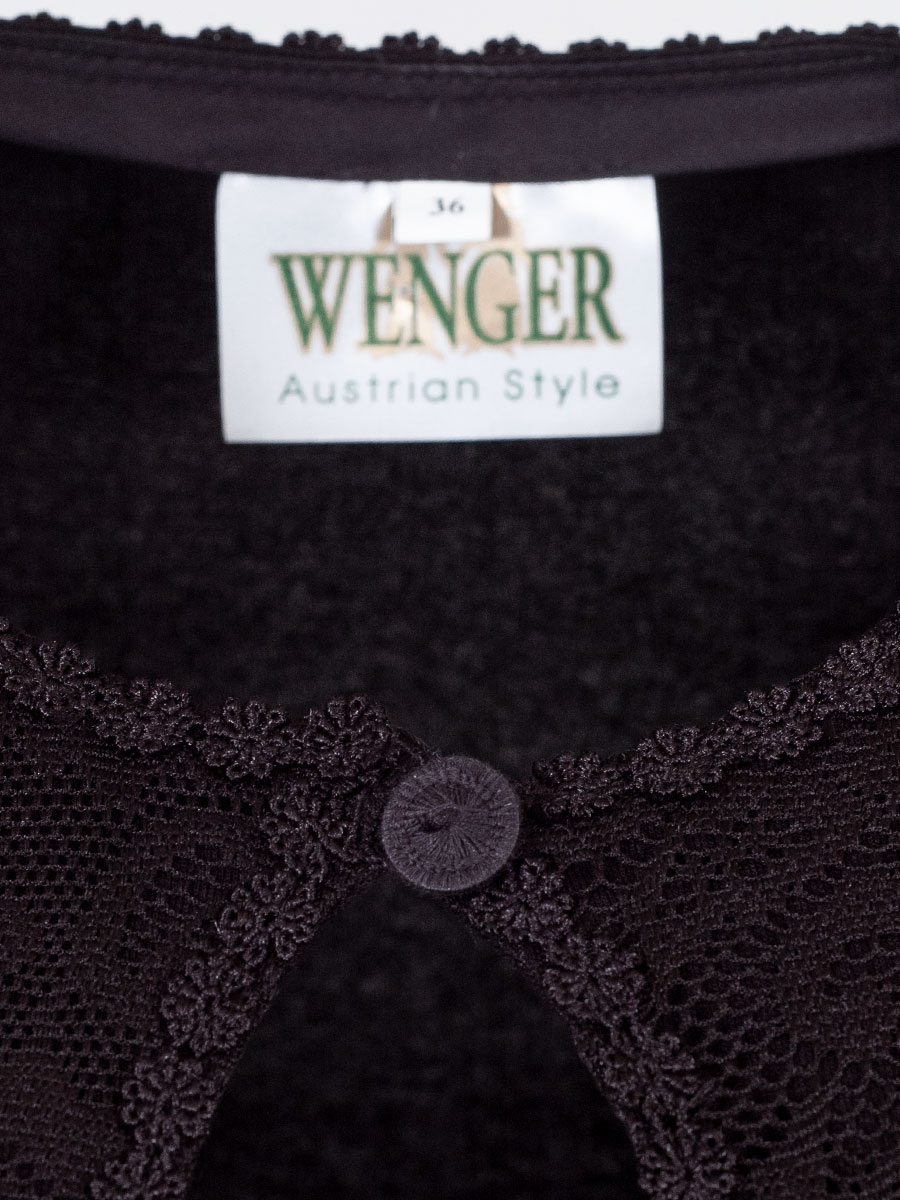 Wenger Fuschlsee Spitzenbody, schwarz, Kurzarm, Spitze, Shirtrücken, Stretch