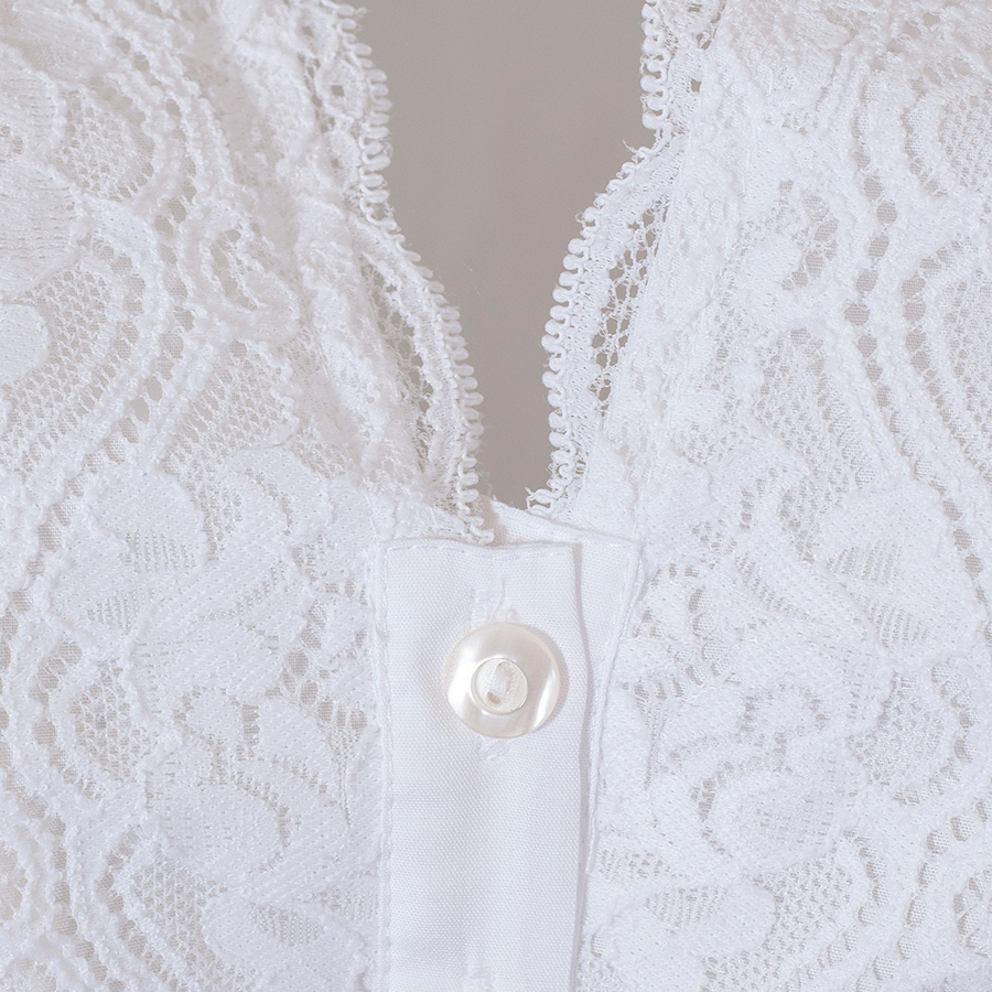 Wenger Inga Dirndlbluse, V-Ausschnitt, breite Spitzenborte, weiß